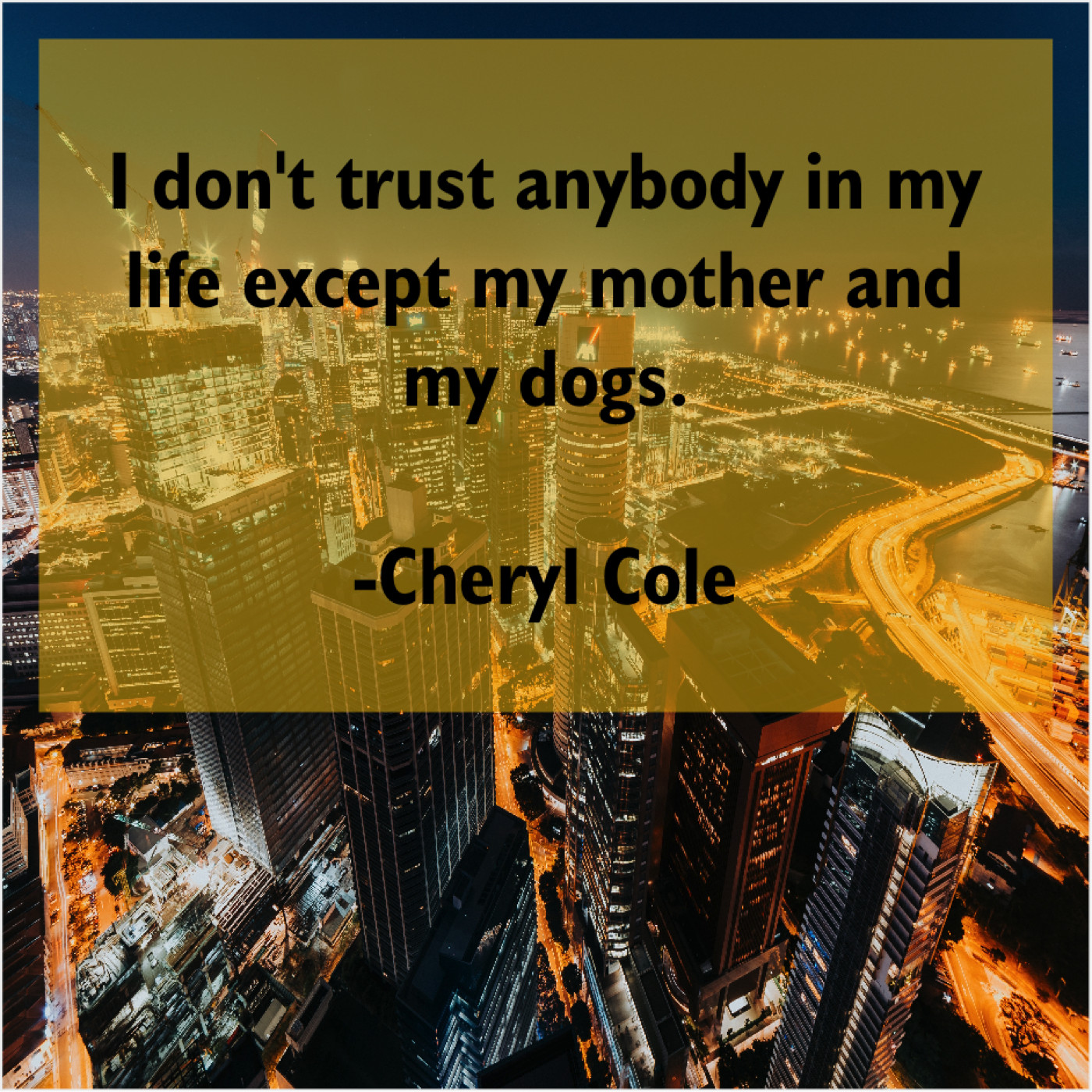 Cheryl Cole Cheryl Cole – I don’t trust anybody in… March 29, 2019 admin “I don’t trust anybody in my life except my mother and my dogs.”-Cheryl Cole
