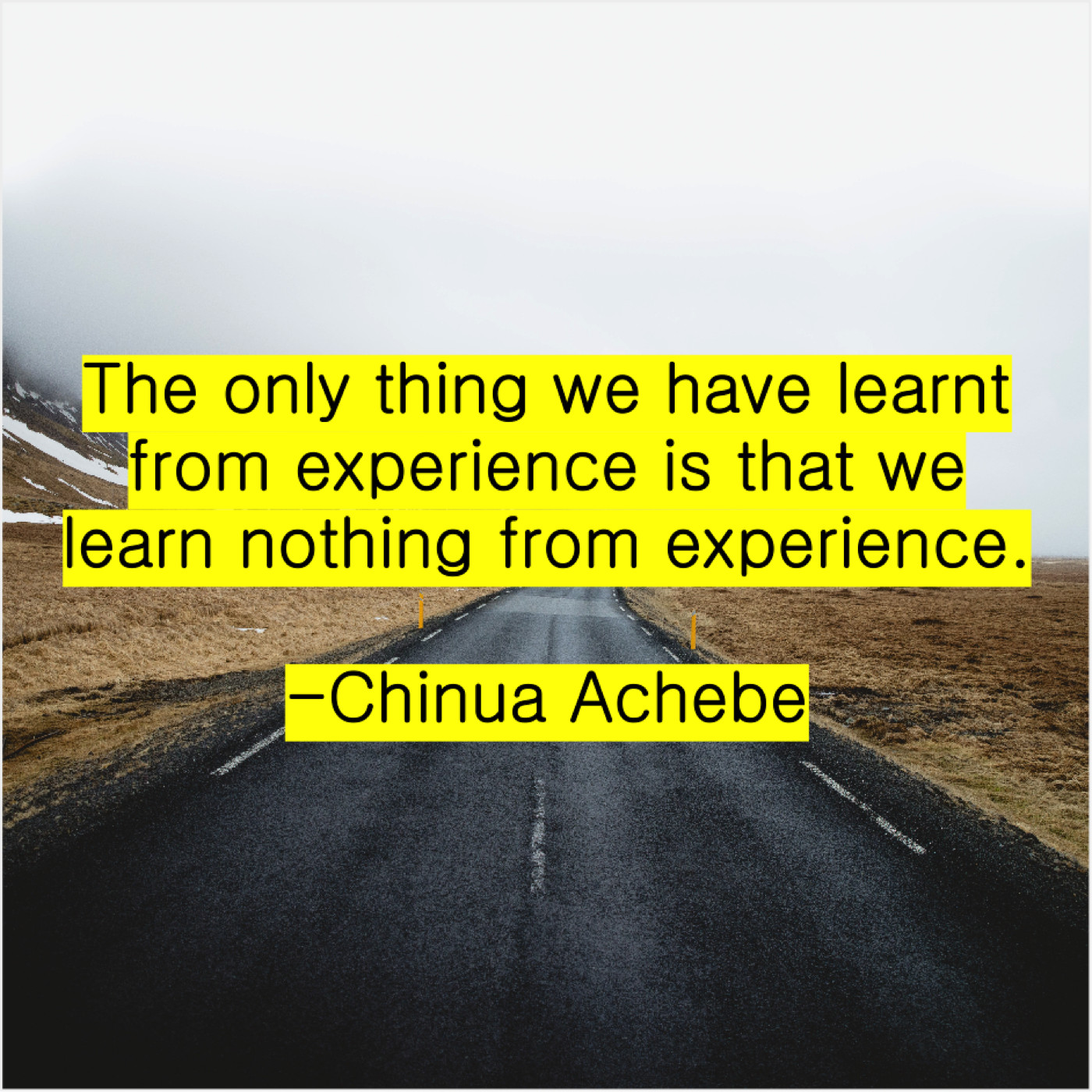 Chinua Achebe Chinua Achebe – The only thing we have… November 17, 2018 admin “The only thing we have learnt from experience is that we learn nothing from experience.”-Chinua Achebe