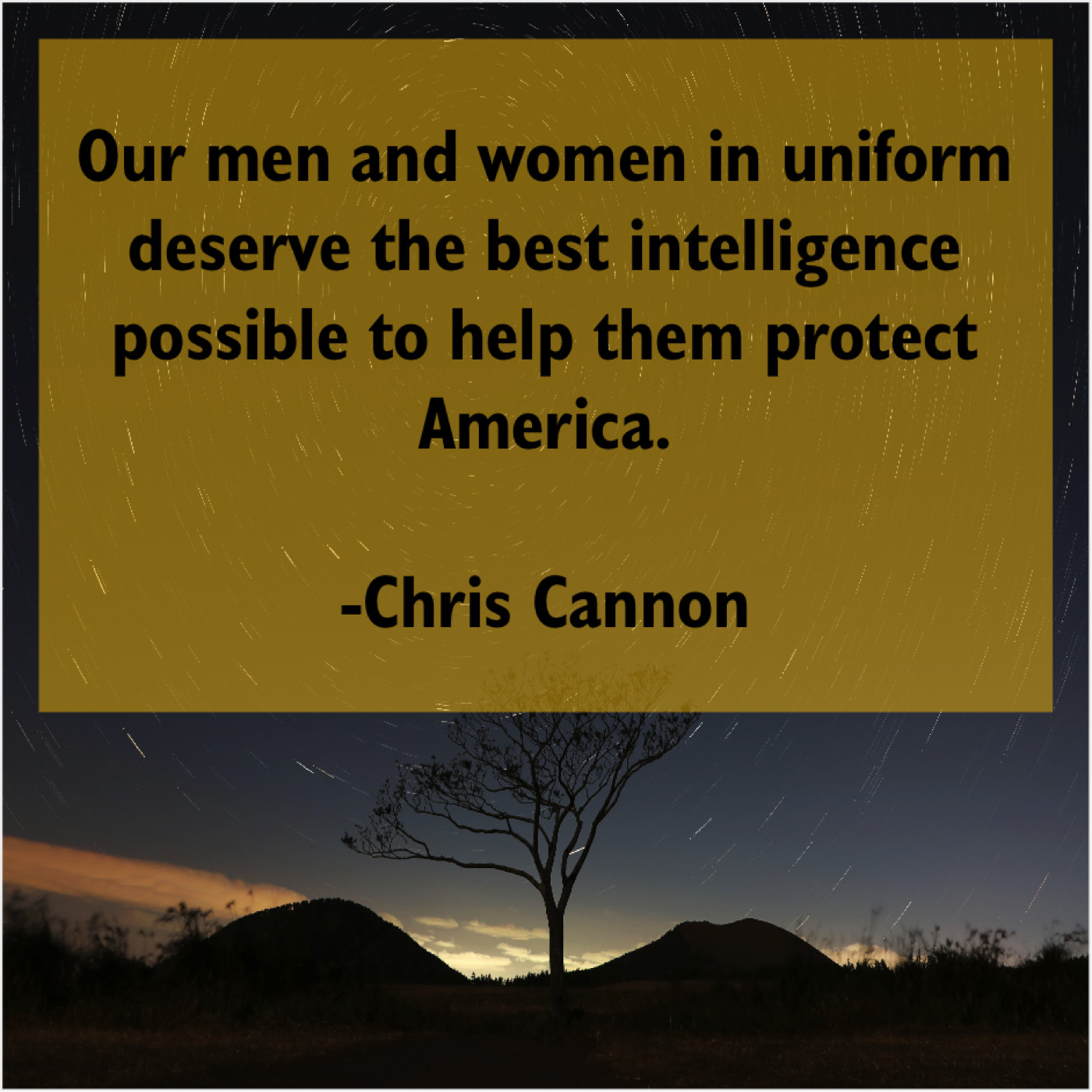 Chris Cannon Chris Cannon – Our men and women in… October 23, 2019 admin “Our men and women in uniform deserve the best intelligence possible to help them protect America.”-Chris Cannon