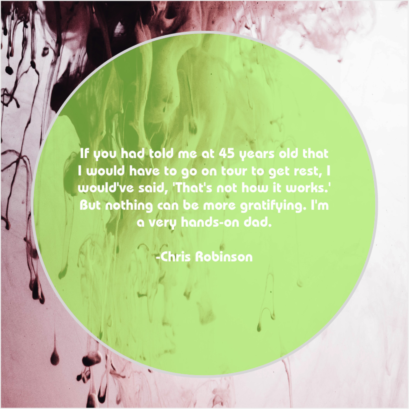 Chris Robinson Chris Robinson – If you had told me… September 3, 2019 admin “If you had told me at 45 years old that I would have to go on tour to get rest, I would’ve said, ‘That’s not how it works.’ But nothing can be more gratifying. I’m a very hands-on dad.”-Chris Robinson