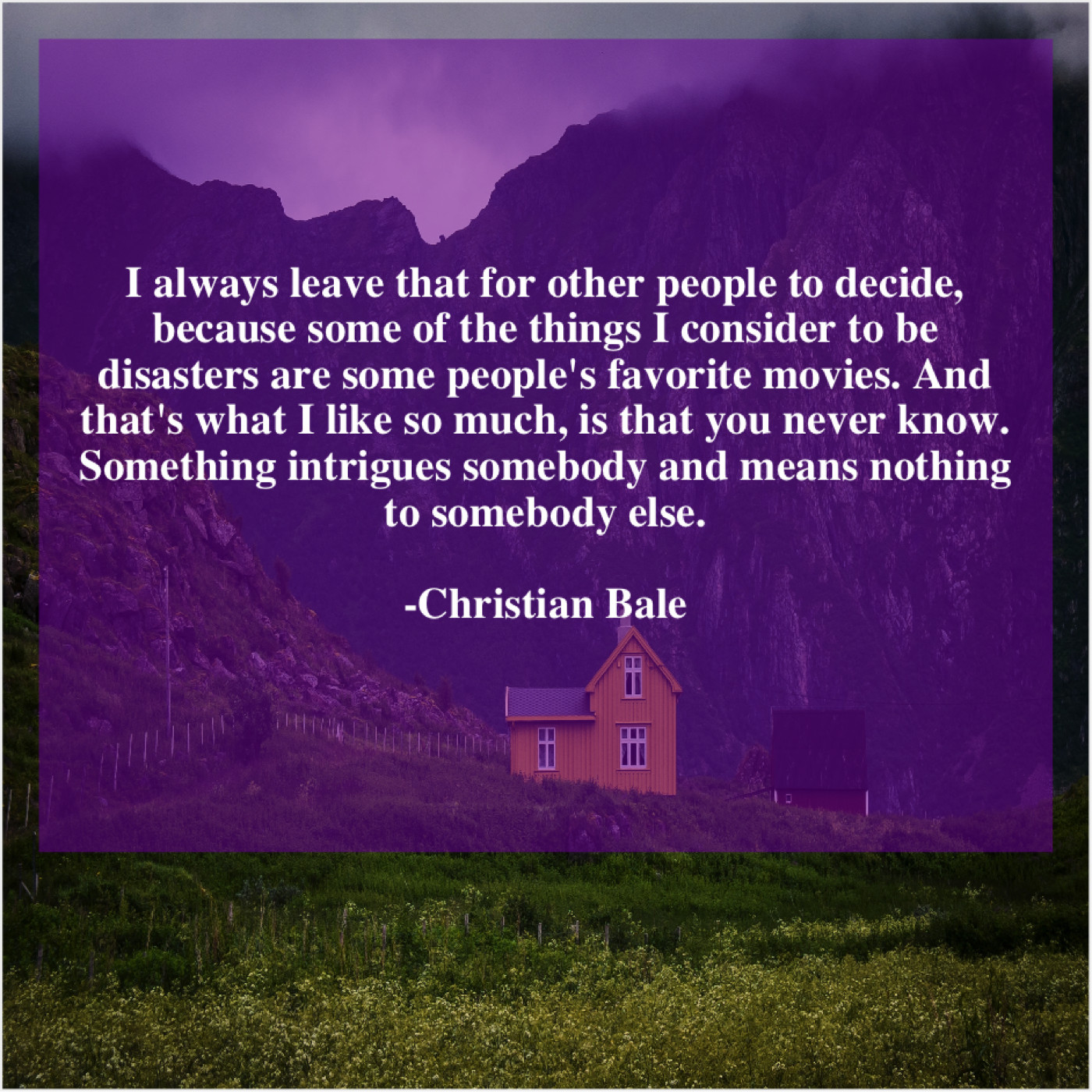 “I always leave that for other people to decide, because some of the things I consider to be disasters are some people’s favorite movies. And that’s what I like so much, is that you never know. Something intrigues somebody and means nothing to somebody else.”