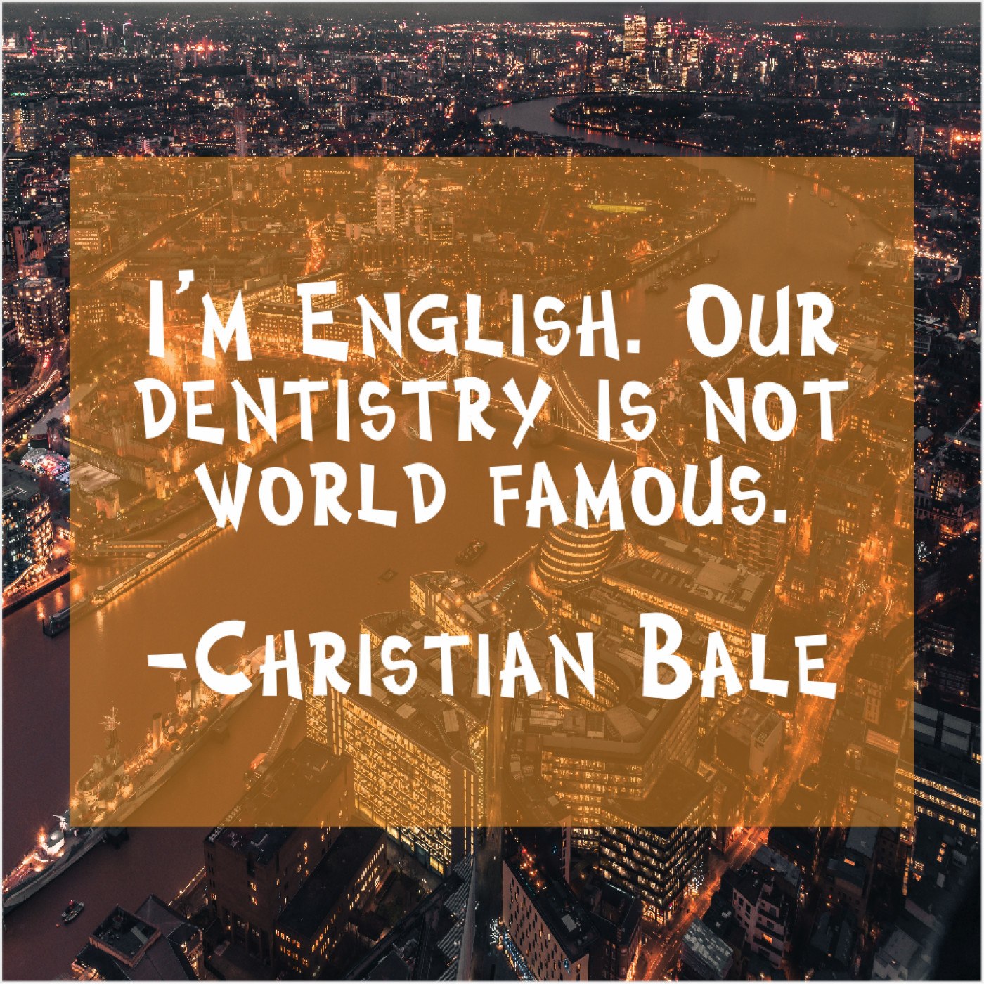 Christian Bale Christian Bale – I’m English. Our dentistry is… December 6, 2018 admin “I’m English. Our dentistry is not world famous.”-Christian Bale