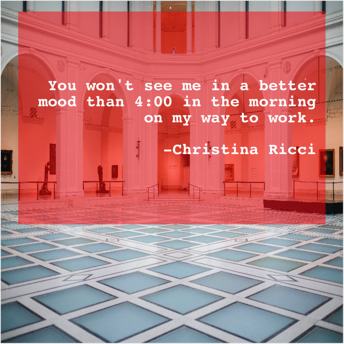 Christina Ricci Christina Ricci – You won’t see me in… March 3, 2019 admin “You won’t see me in a better mood than 4:00 in the morning on my way to work.”-Christina Ricci