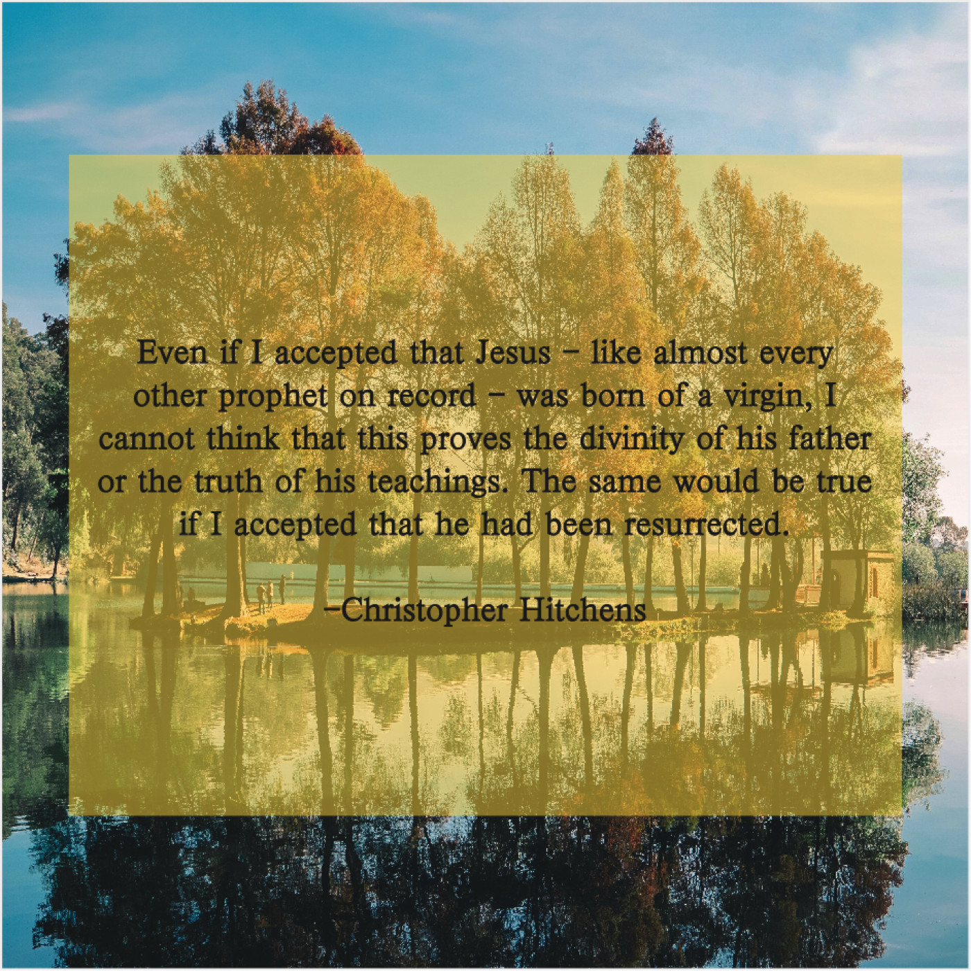 “Even if I accepted that Jesus – like almost every other prophet on record – was born of a virgin, I cannot think that this proves the divinity of his father or the truth of his teachings. The same would be true if I accepted that he had been resurrected.”