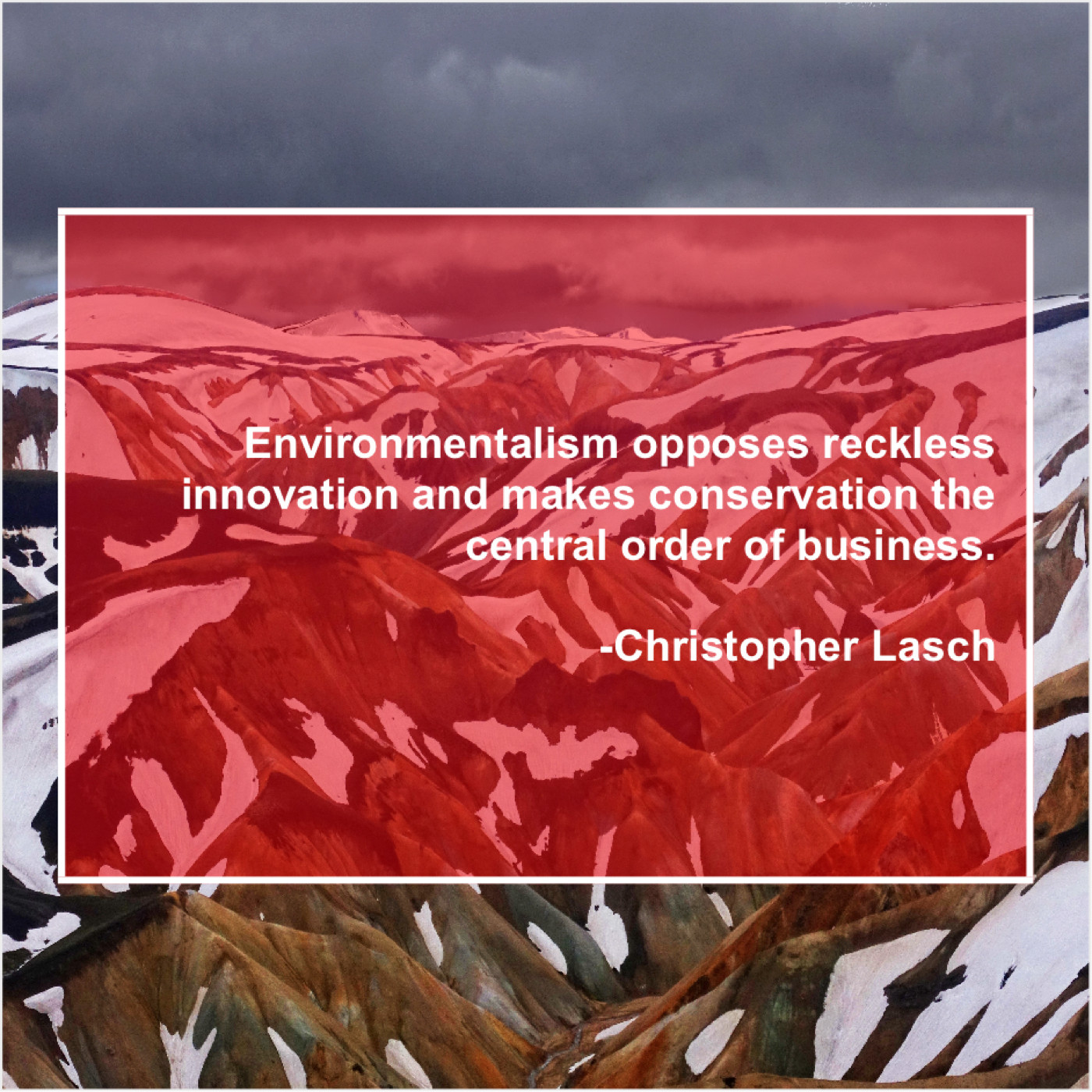 Christopher Lasch Christopher Lasch – Environmentalism opposes reckless innovation and… November 19, 2018 admin “Environmentalism opposes reckless innovation and makes conservation the central order of business.”-Christopher Lasch