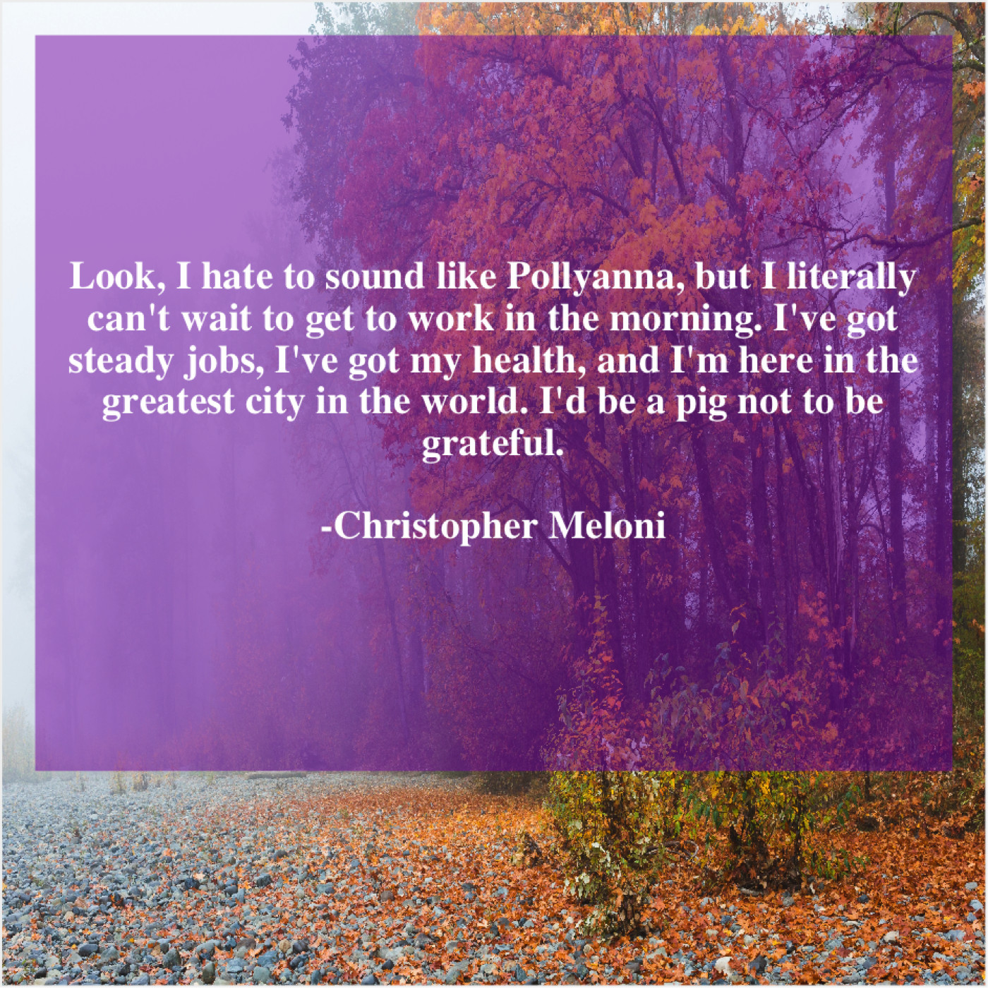Christopher Meloni Christopher Meloni – Look, I hate to sound… September 22, 2019 admin “Look, I hate to sound like Pollyanna, but I literally can’t wait to get to work in the morning. I’ve got steady jobs, I’ve got my health, and I’m here in the greatest city in the world. I’d be a pig not to be grateful.”-Christopher Meloni