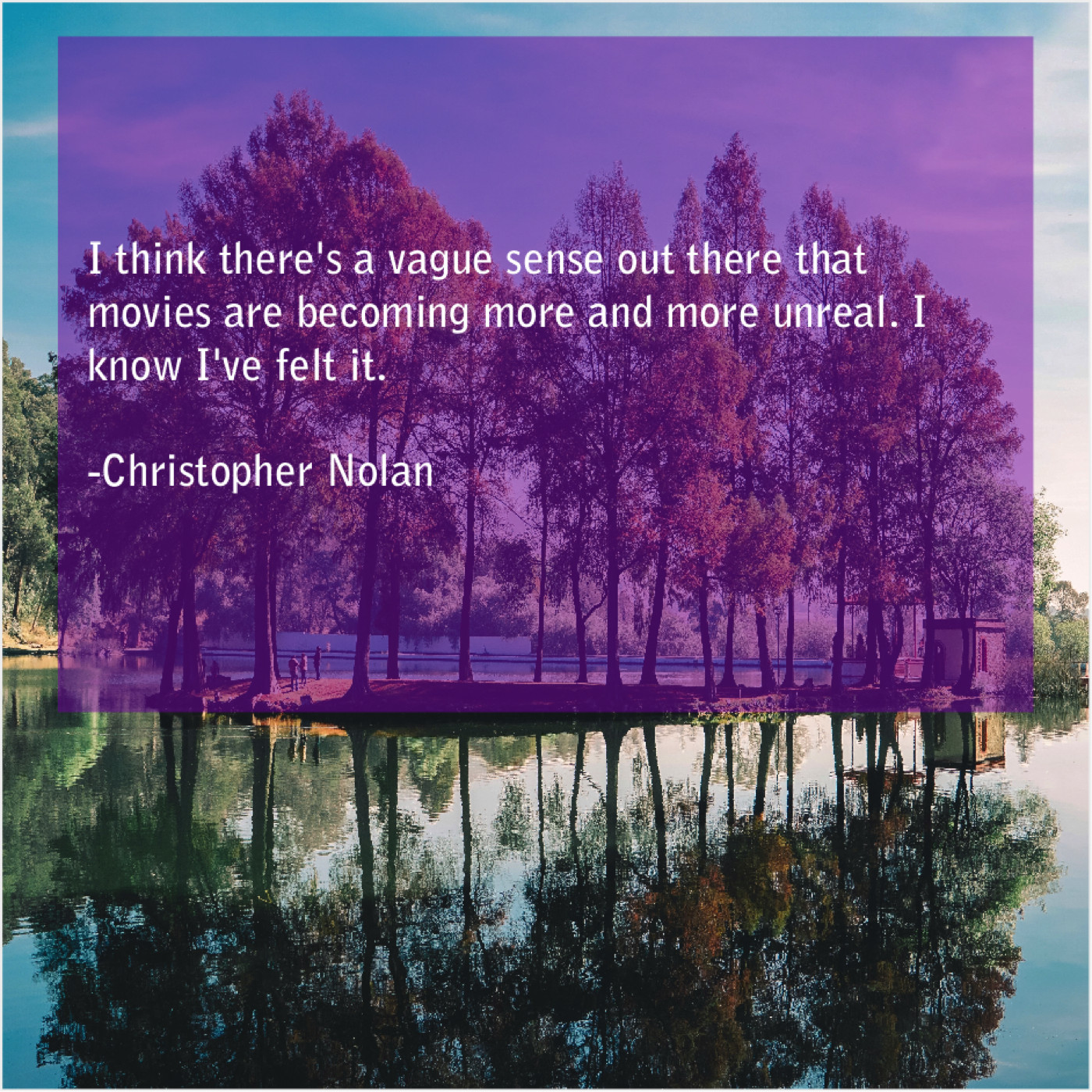 Christopher Nolan Christopher Nolan – I think there’s a vague… July 10, 2019 admin “I think there’s a vague sense out there that movies are becoming more and more unreal. I know I’ve felt it.”-Christopher Nolan