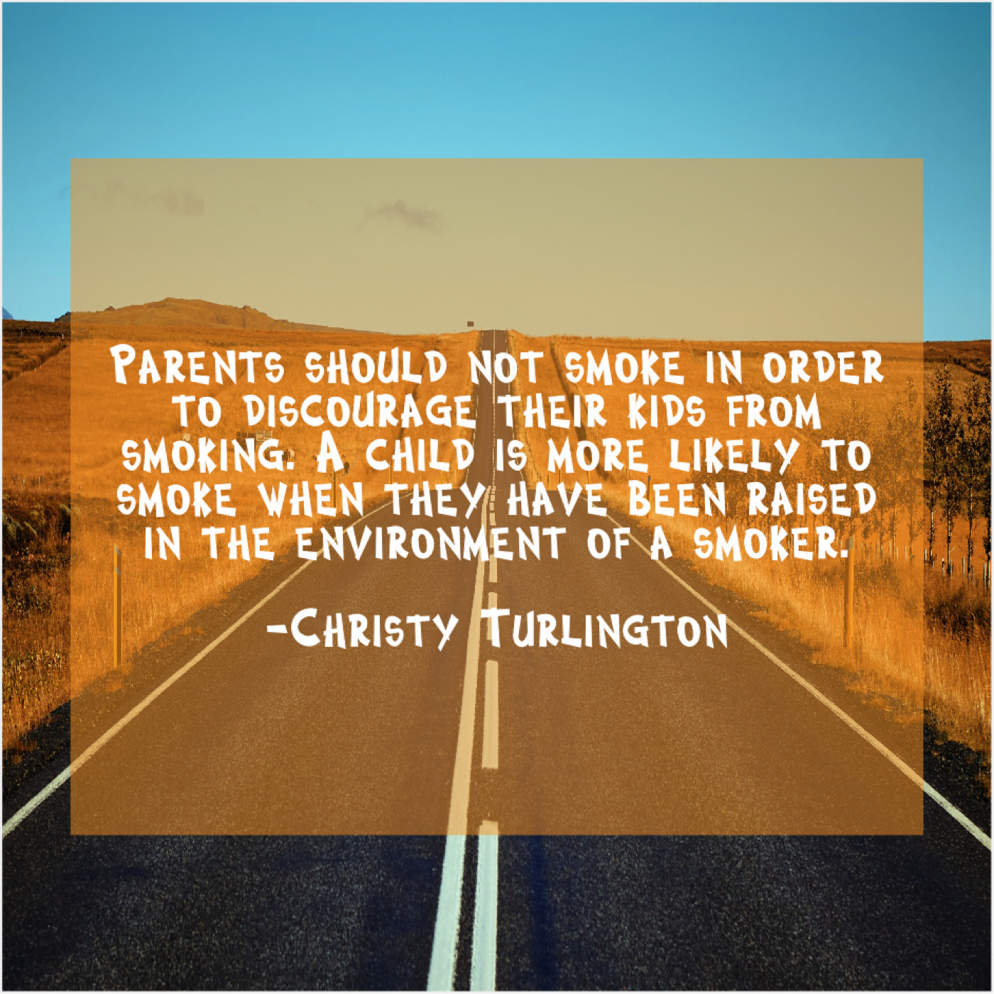“Parents should not smoke in order to discourage their kids from smoking. A child is more likely to smoke when they have been raised in the environment of a smoker.”