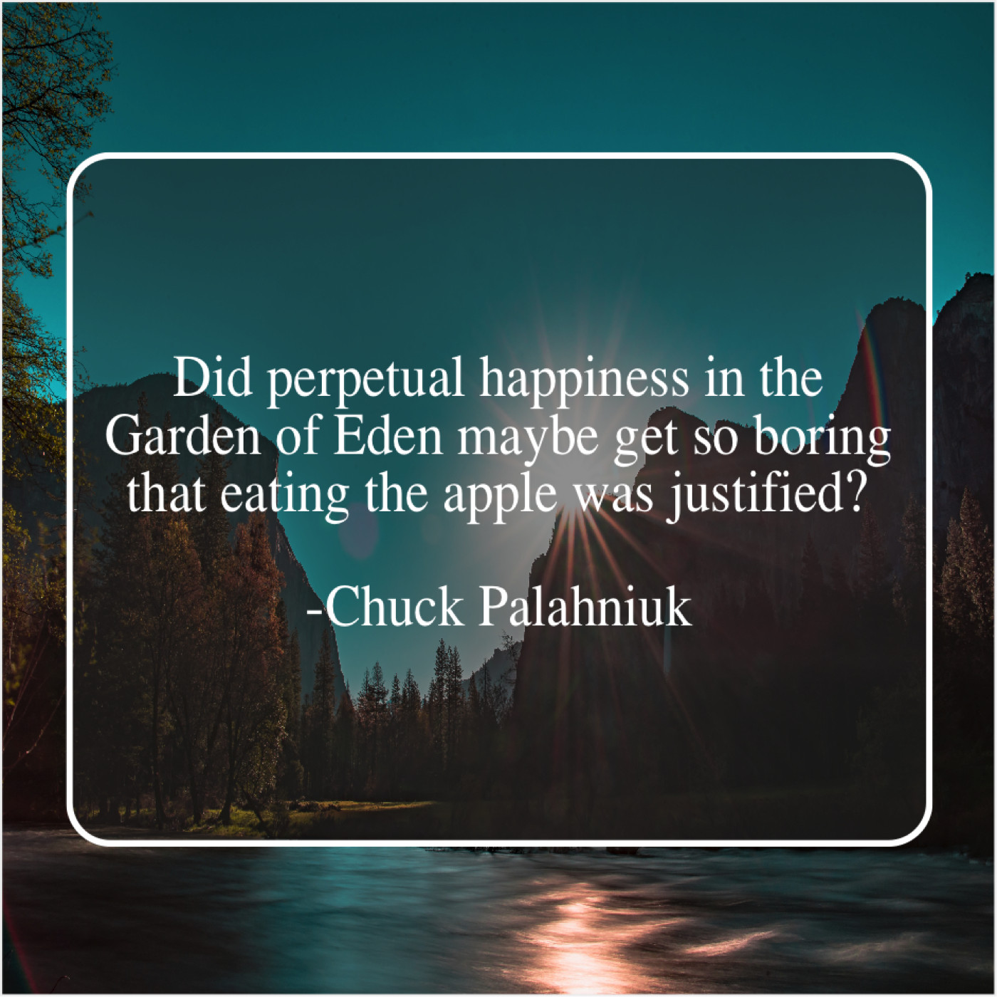 “Did perpetual happiness in the Garden of Eden maybe get so boring that eating the apple was justified?”