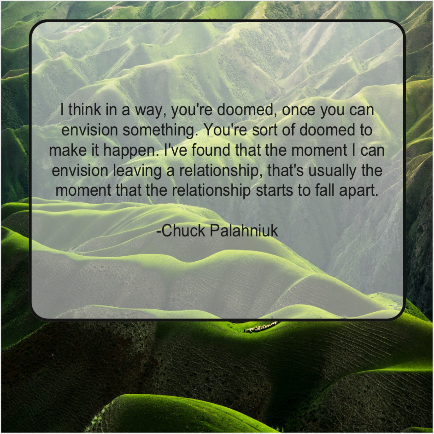 “I think in a way, you’re doomed, once you can envision something. You’re sort of doomed to make it happen. I’ve found that the moment I can envision leaving a relationship, that’s usually the moment that the relationship starts to fall apart.”