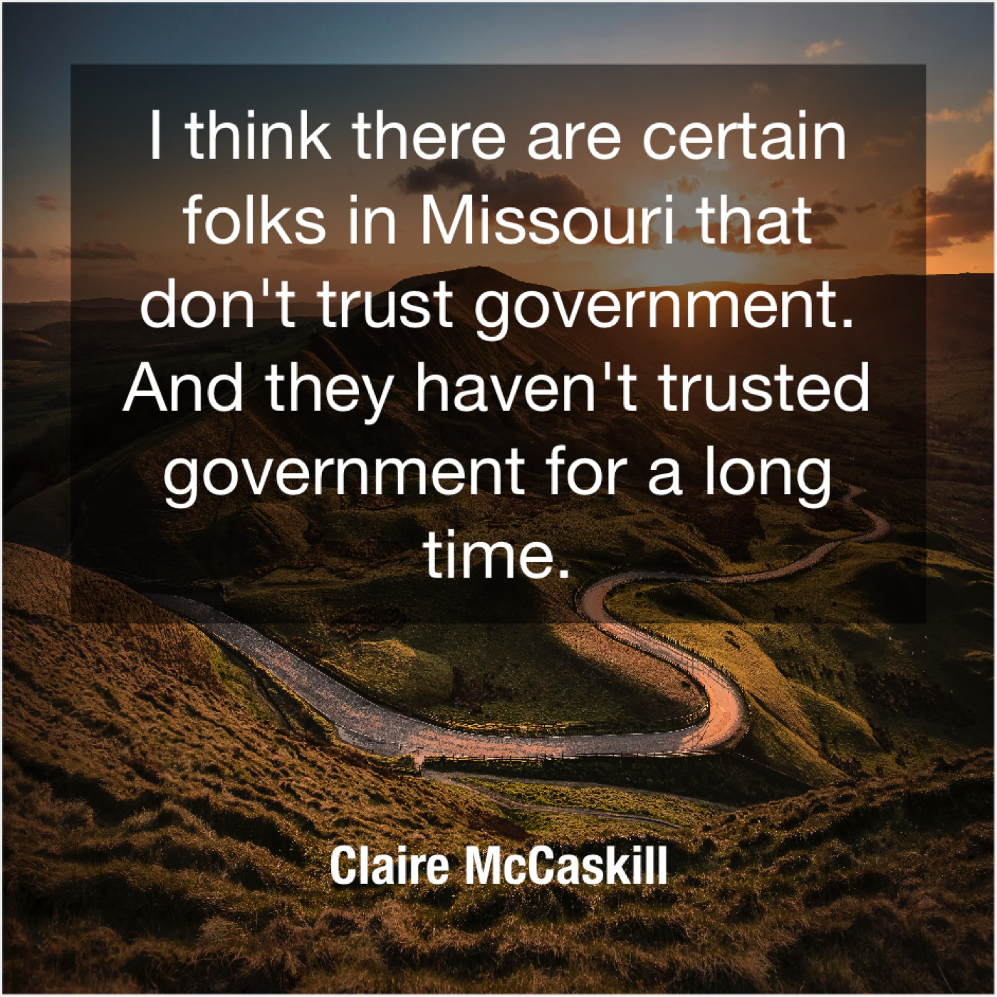 Claire McCaskill Claire McCaskill – I think there are certain… October 26, 2018 admin “I think there are certain folks in Missouri that don’t trust government. And they haven’t trusted government for a long time.”-Claire McCaskill
