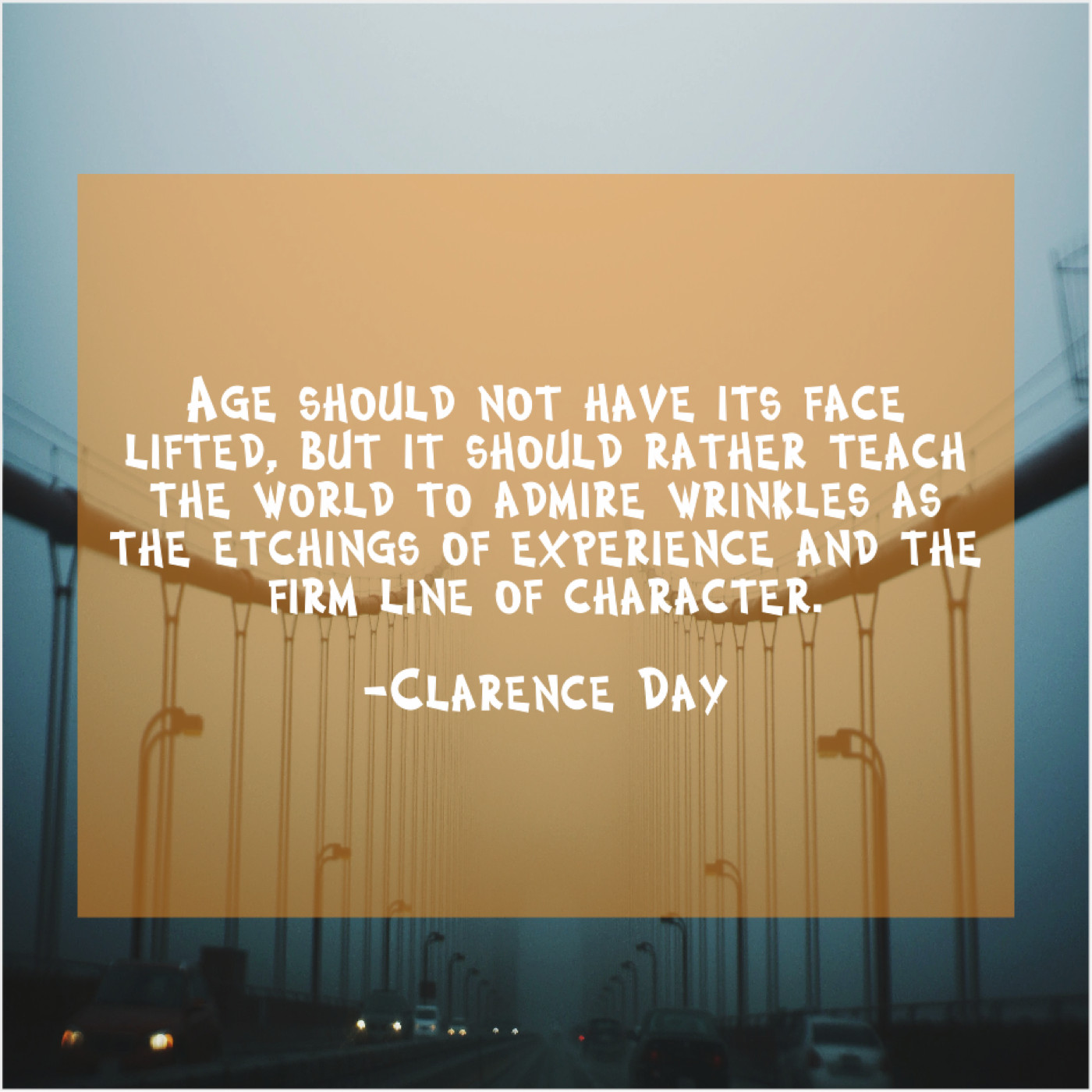 Clarence Day Clarence Day – Age should not have its… May 28, 2019 admin “Age should not have its face lifted, but it should rather teach the world to admire wrinkles as the etchings of experience and the firm line of character.”-Clarence Day