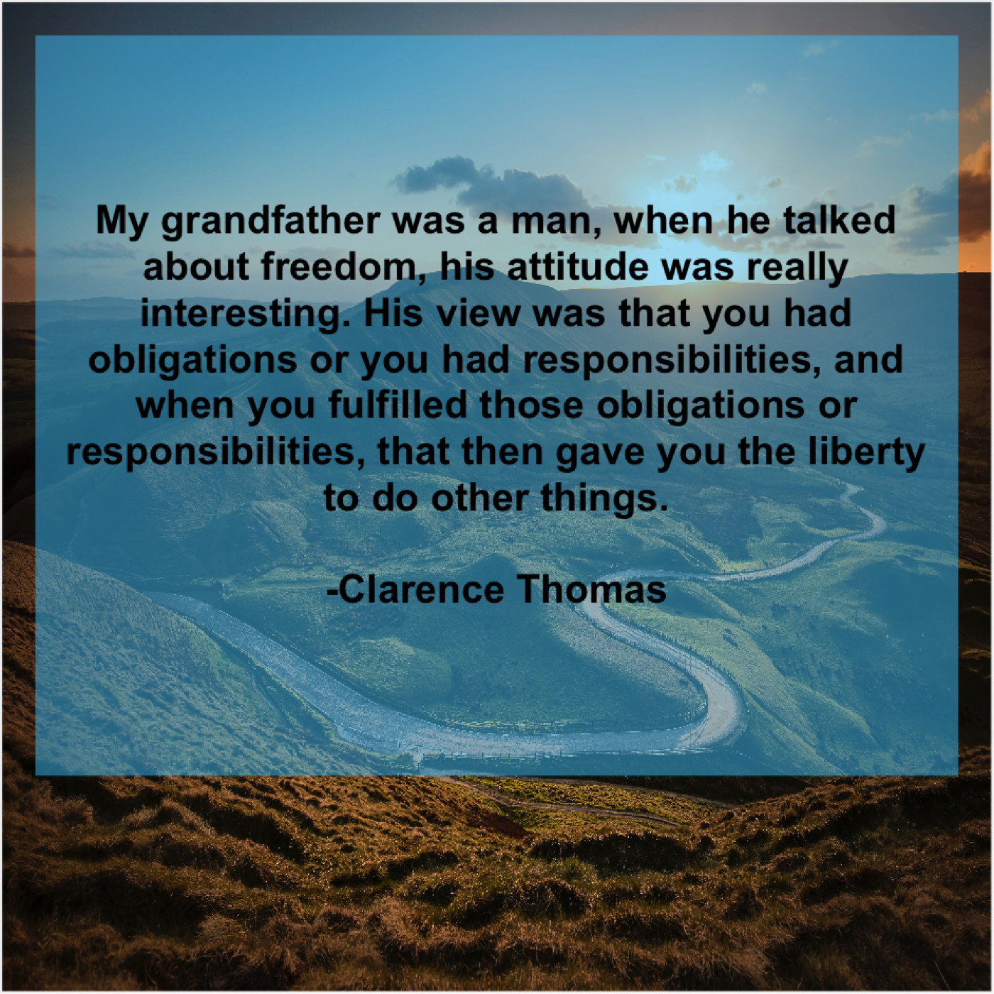“My grandfather was a man, when he talked about freedom, his attitude was really interesting. His view was that you had obligations or you had responsibilities, and when you fulfilled those obligations or responsibilities, that then gave you the liberty to do other things.”