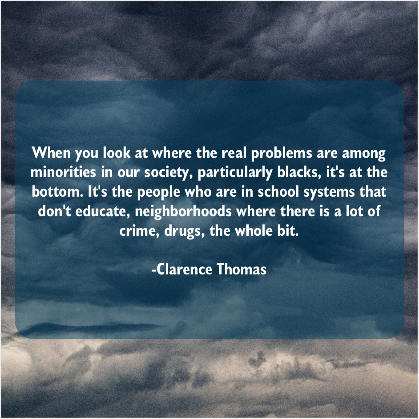 “When you look at where the real problems are among minorities in our society, particularly blacks, it’s at the bottom. It’s the people who are in school systems that don’t educate, neighborhoods where there is a lot of crime, drugs, the whole bit.”