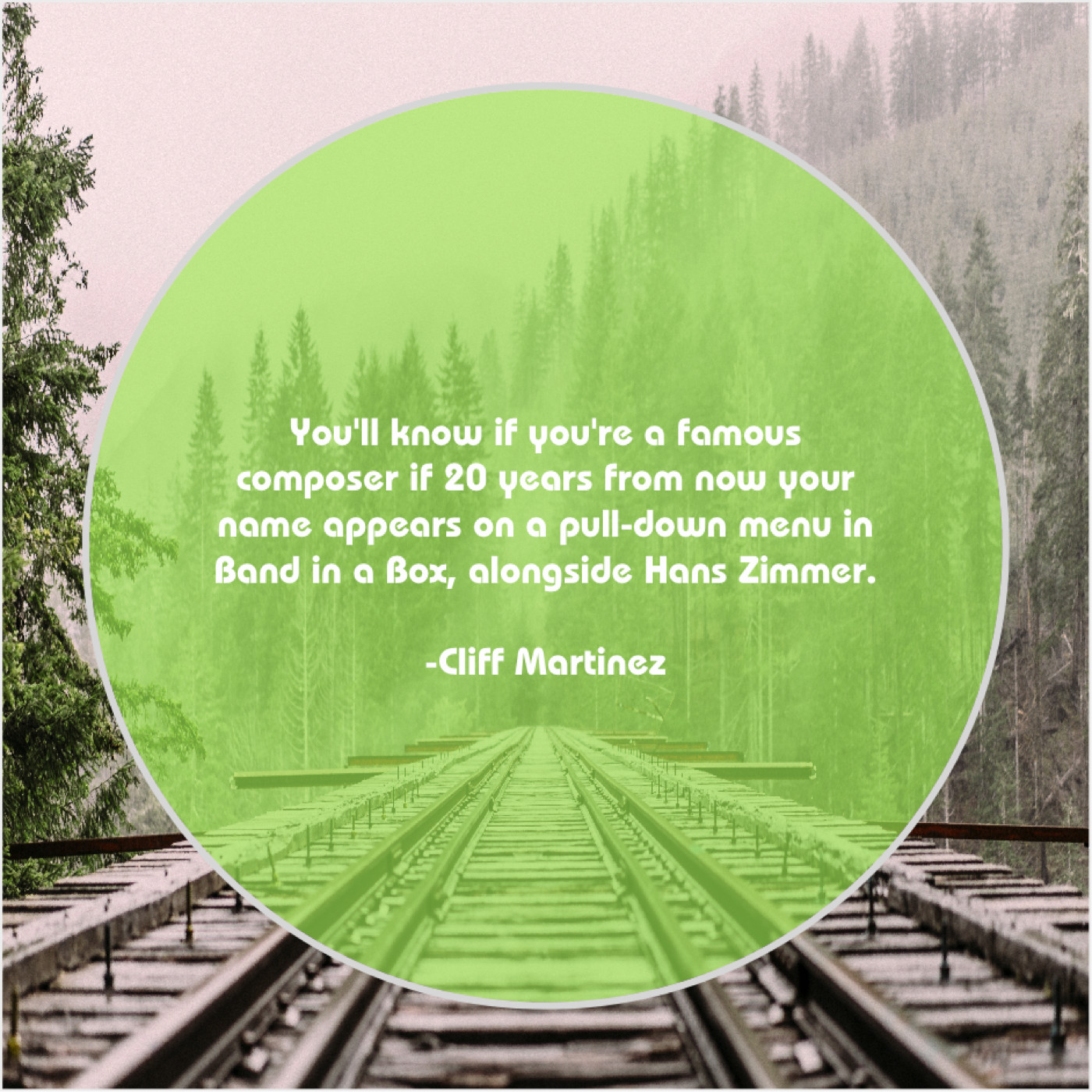 Cliff Martinez Cliff Martinez – You’ll know if you’re a… August 24, 2019 admin “You’ll know if you’re a famous composer if 20 years from now your name appears on a pull-down menu in Band in a Box, alongside Hans Zimmer.”-Cliff Martinez