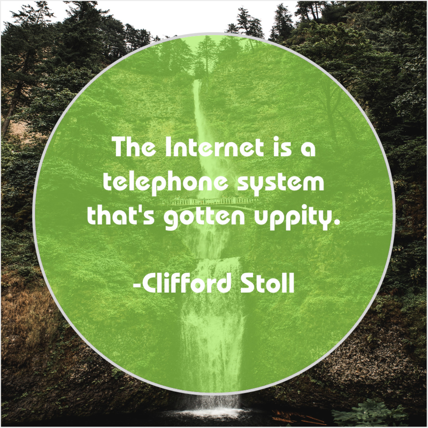 Clifford Stoll Clifford Stoll – The Internet is a telephone… July 2, 2019 admin “The Internet is a telephone system that’s gotten uppity.”-Clifford Stoll