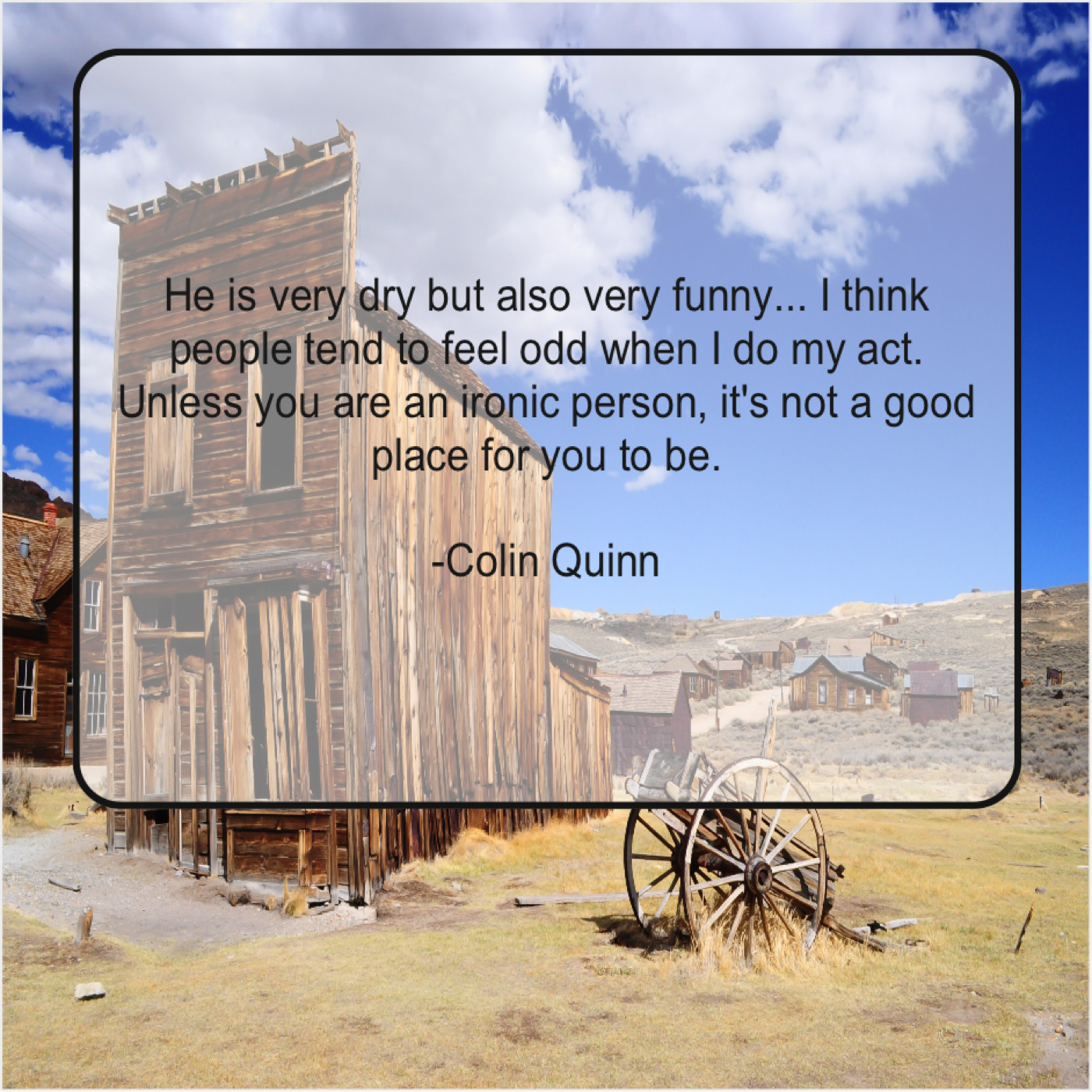 Colin Quinn Colin Quinn – He is very dry but… May 25, 2019 admin “He is very dry but also very funny… I think people tend to feel odd when I do my act. Unless you are an ironic person, it’s not a good place for you to be.”-Colin Quinn