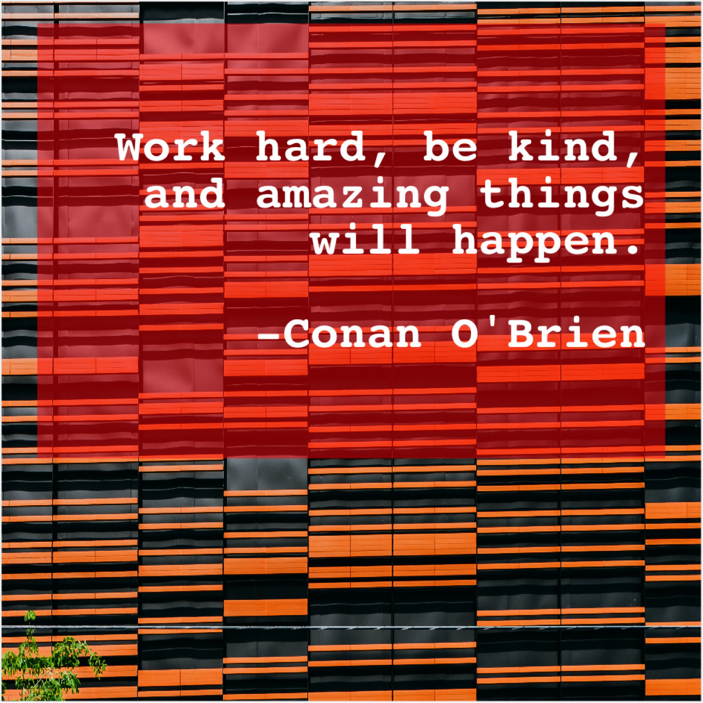 Conan O'Brien Conan O’Brien – Work hard, be kind, and… June 15, 2019 admin “Work hard, be kind, and amazing things will happen.”-Conan O’Brien