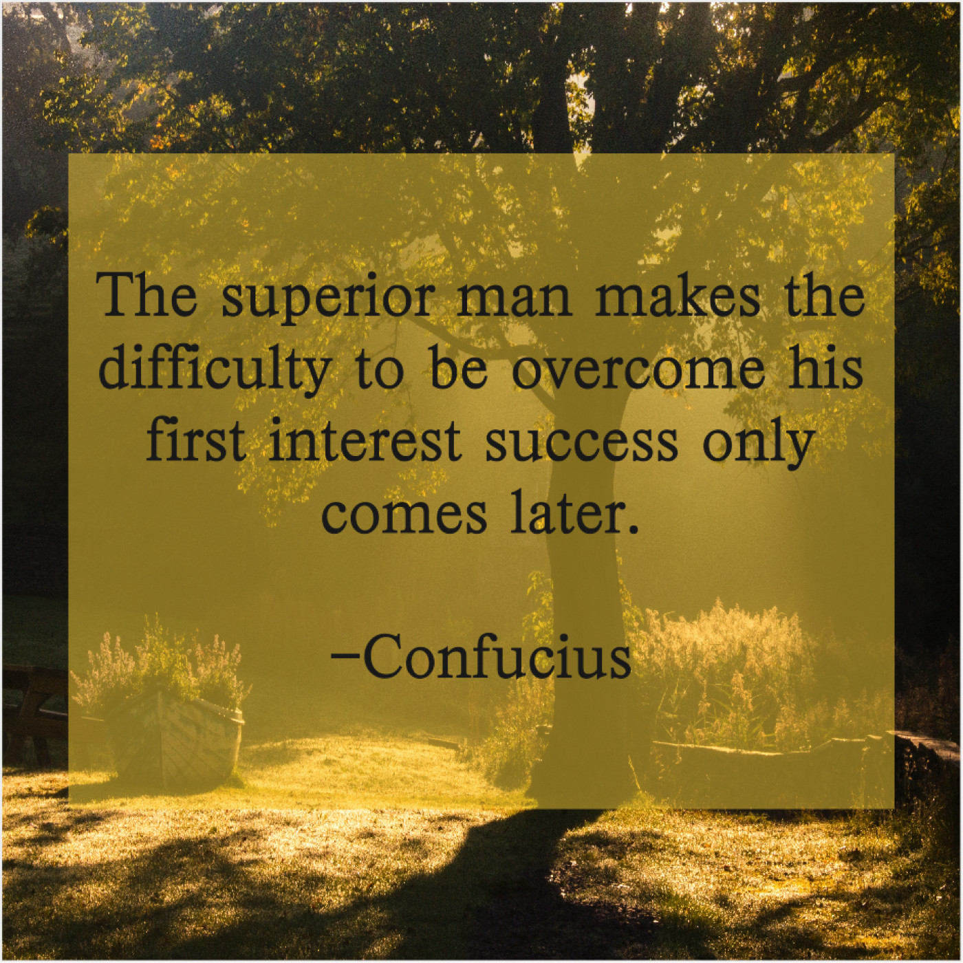Confucius Confucius – The superior man makes the… April 15, 2019 admin “The superior man makes the difficulty to be overcome his first interest success only comes later.”-Confucius