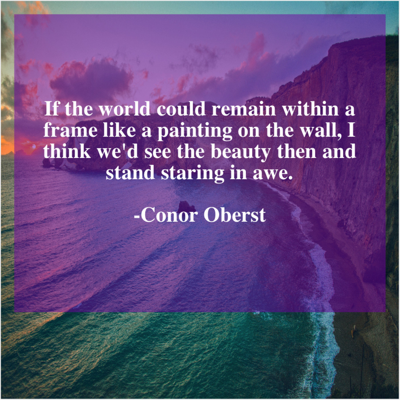 Conor Oberst Conor Oberst – If the world could remain… July 10, 2019 admin “If the world could remain within a frame like a painting on the wall, I think we’d see the beauty then and stand staring in awe.”-Conor Oberst