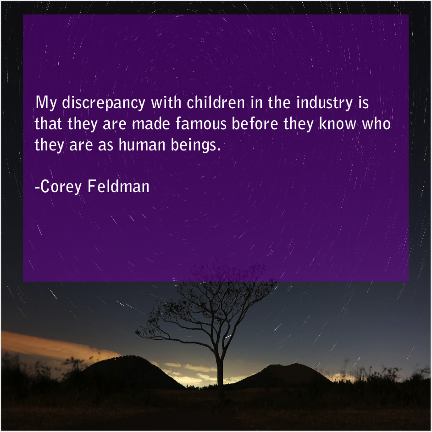 Corey Feldman Corey Feldman – My discrepancy with children in… December 3, 2018 admin “My discrepancy with children in the industry is that they are made famous before they know who they are as human beings.”-Corey Feldman