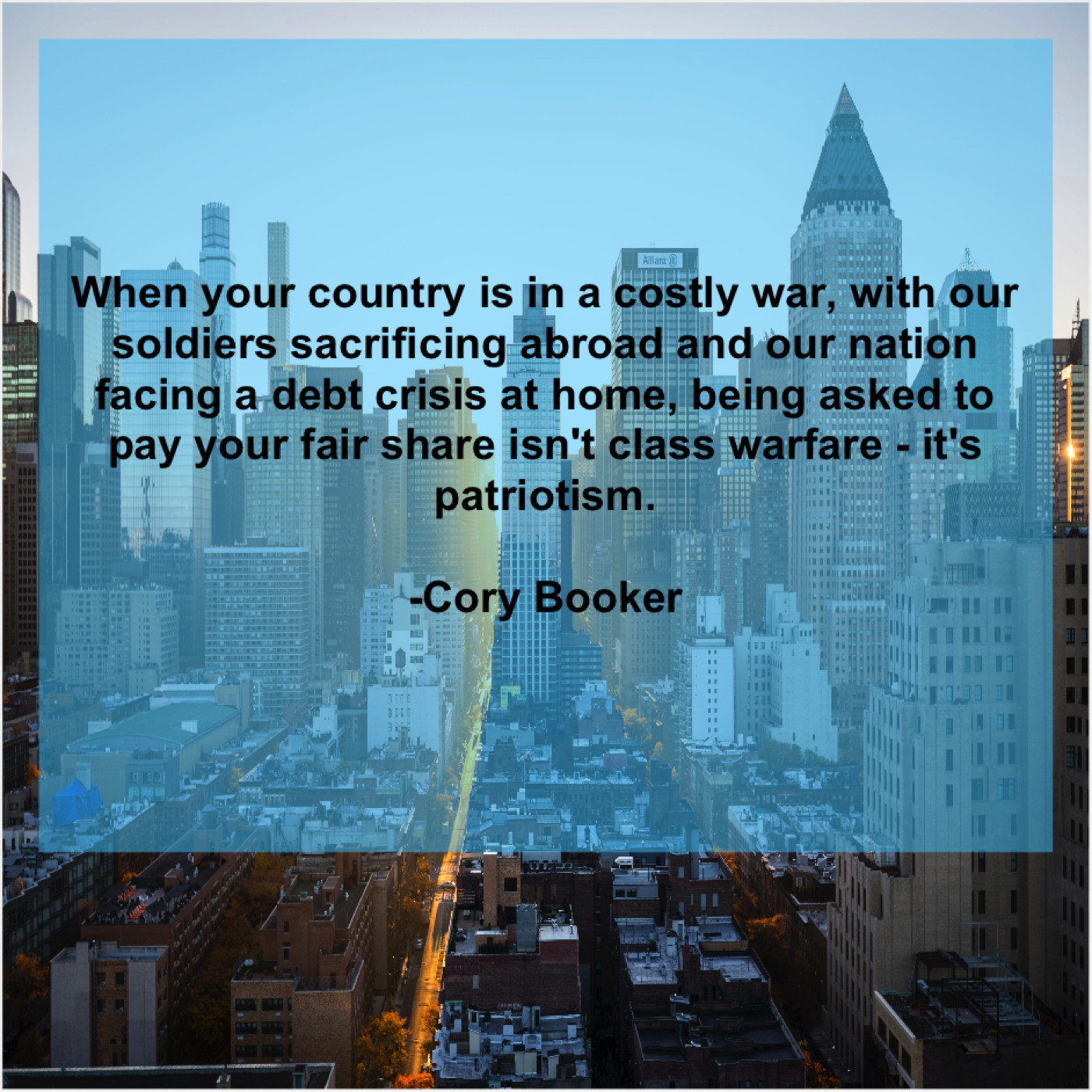 “When your country is in a costly war, with our soldiers sacrificing abroad and our nation facing a debt crisis at home, being asked to pay your fair share isn’t class warfare – it’s patriotism.”