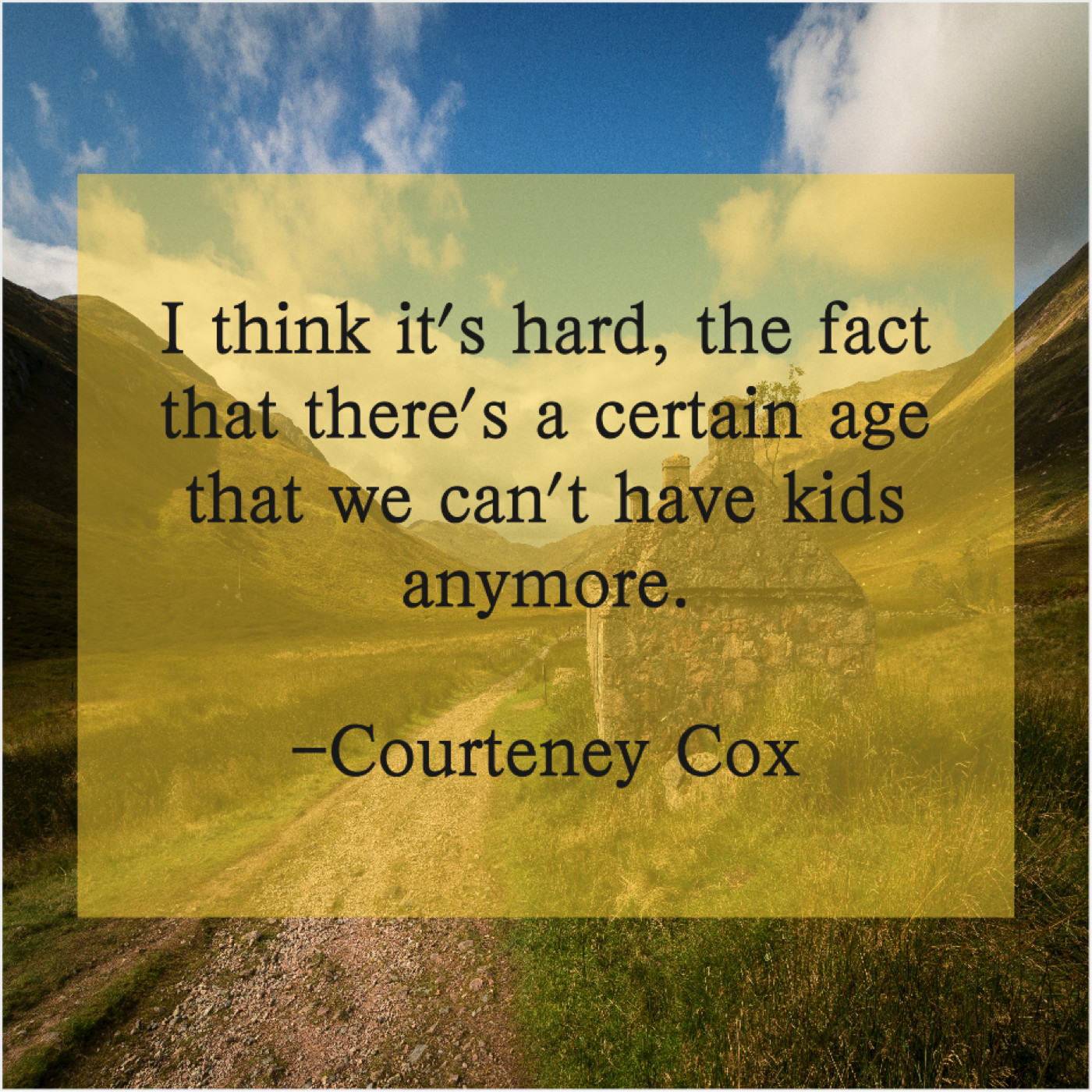 Courteney Cox Courteney Cox – I think it’s hard, the… July 18, 2019 admin “I think it’s hard, the fact that there’s a certain age that we can’t have kids anymore.”-Courteney Cox