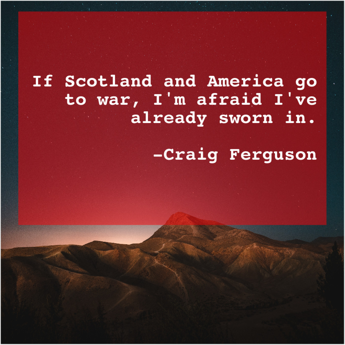 Craig Ferguson Craig Ferguson – If Scotland and America go… November 9, 2018 admin “If Scotland and America go to war, I’m afraid I’ve already sworn in.”-Craig Ferguson