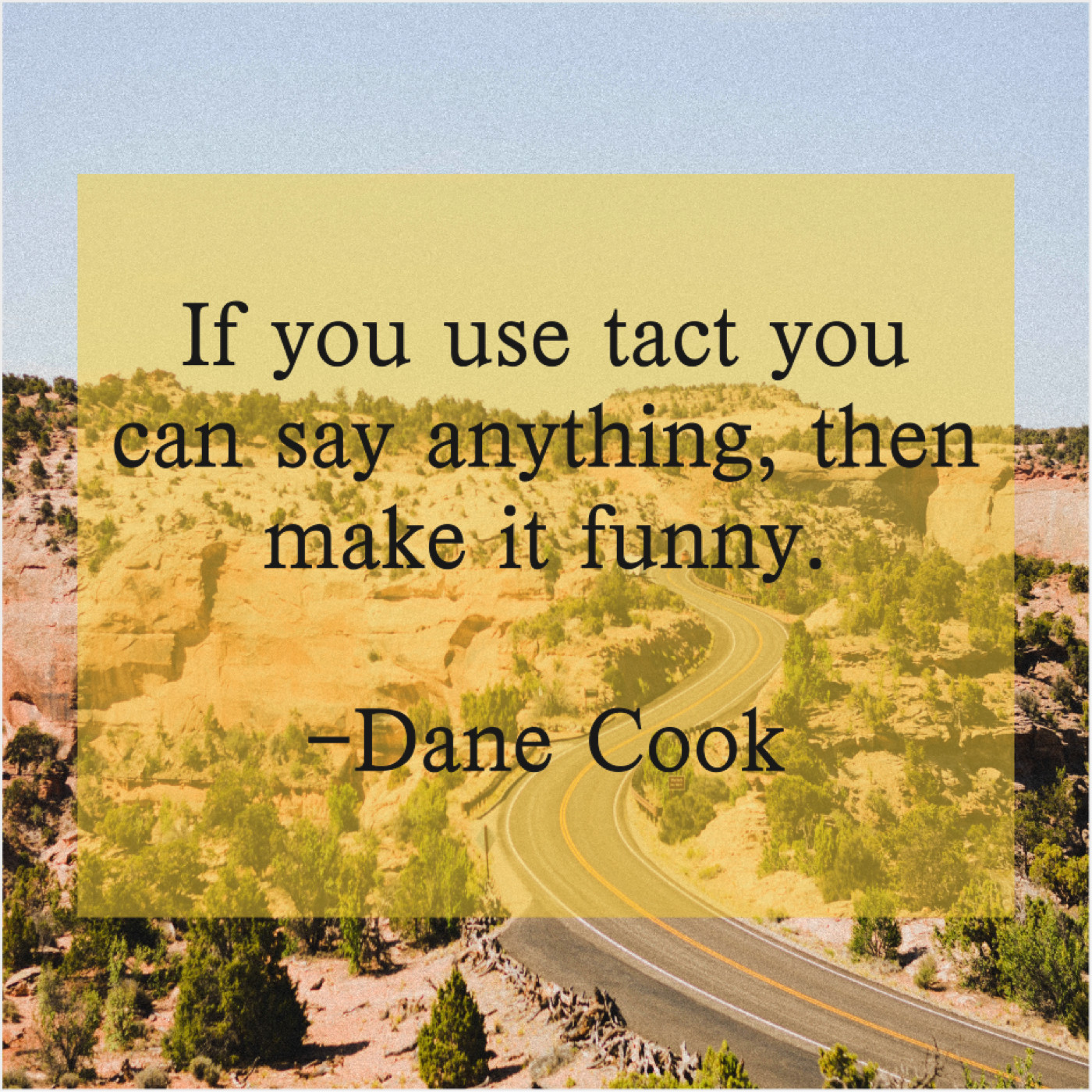 Dane Cook Dane Cook – If you use tact you… July 16, 2019 admin “If you use tact you can say anything, then make it funny.”-Dane Cook