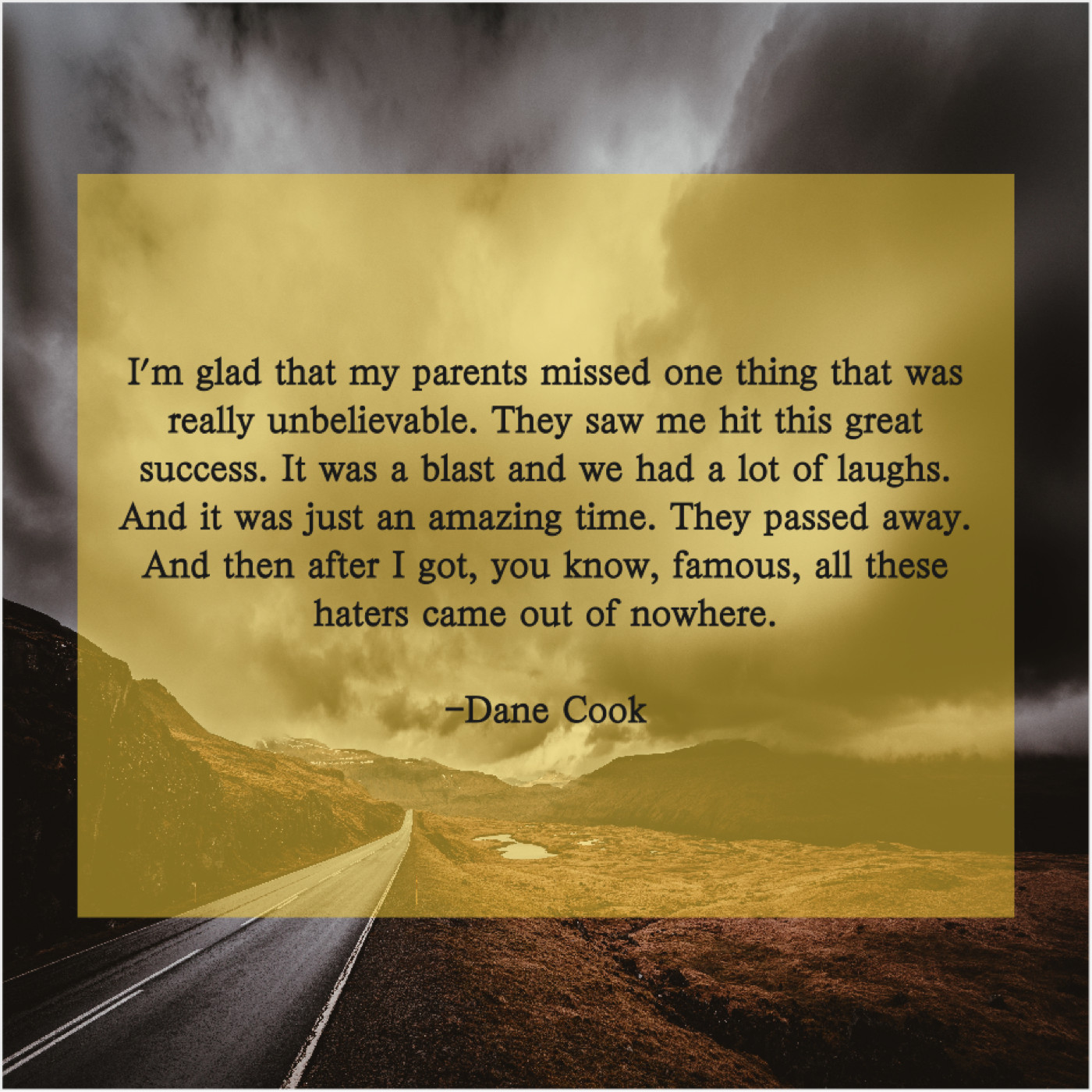 “I’m glad that my parents missed one thing that was really unbelievable. They saw me hit this great success. It was a blast and we had a lot of laughs. And it was just an amazing time. They passed away. And then after I got, you know, famous, all these haters came out of nowhere.”