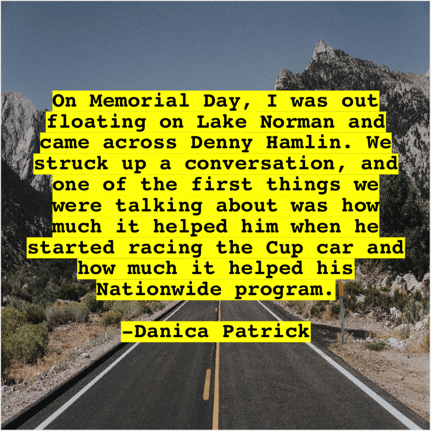 “On Memorial Day, I was out floating on Lake Norman and came across Denny Hamlin. We struck up a conversation, and one of the first things we were talking about was how much it helped him when he started racing the Cup car and how much it helped his Nationwide program.”
