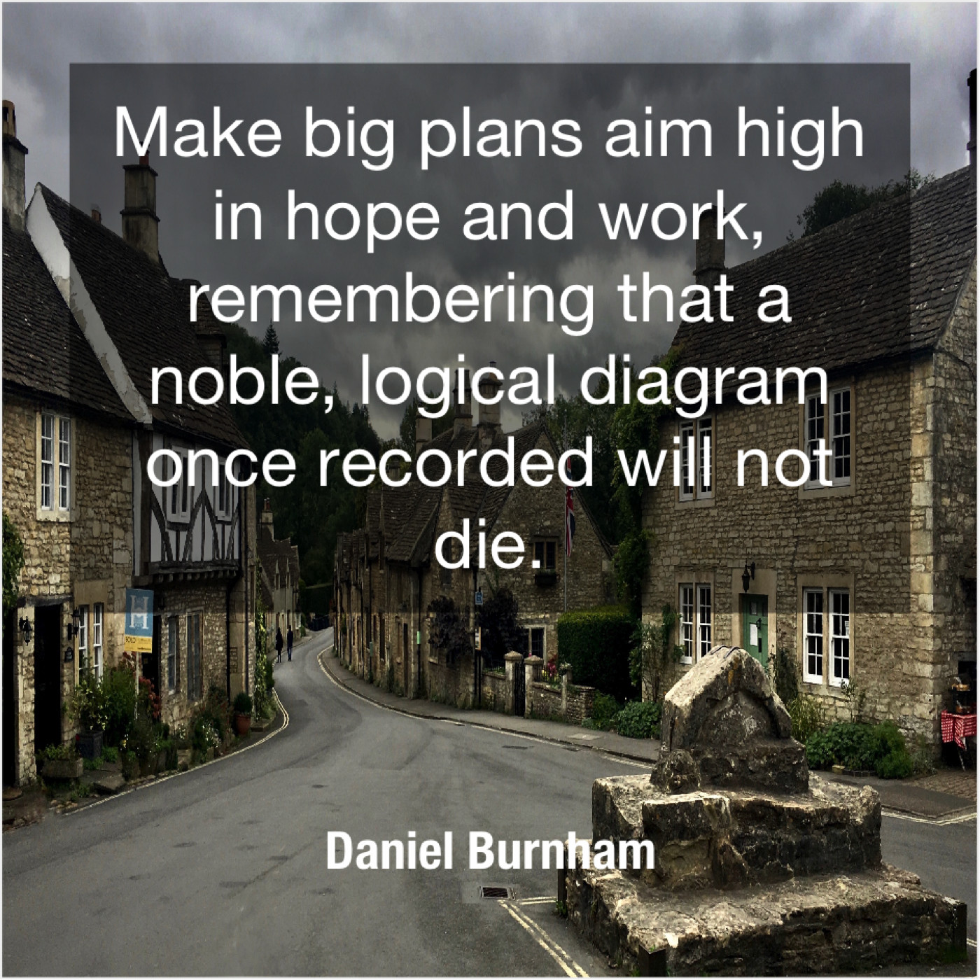 Daniel Burnham Daniel Burnham – Make big plans aim high… September 27, 2019 admin “Make big plans aim high in hope and work, remembering that a noble, logical diagram once recorded will not die.”-Daniel Burnham