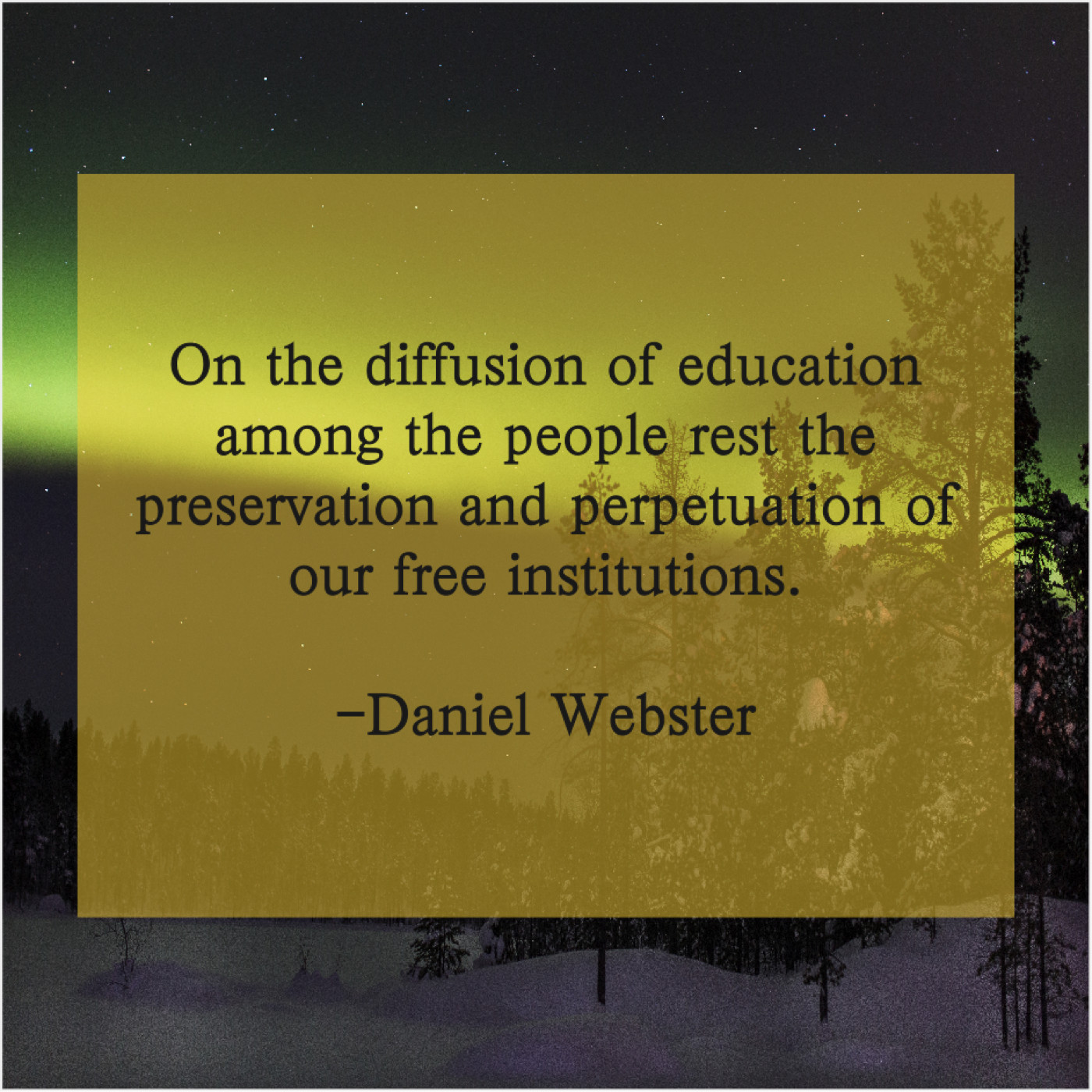 Daniel Webster Daniel Webster – On the diffusion of education… August 7, 2019 admin “On the diffusion of education among the people rest the preservation and perpetuation of our free institutions.”-Daniel Webster