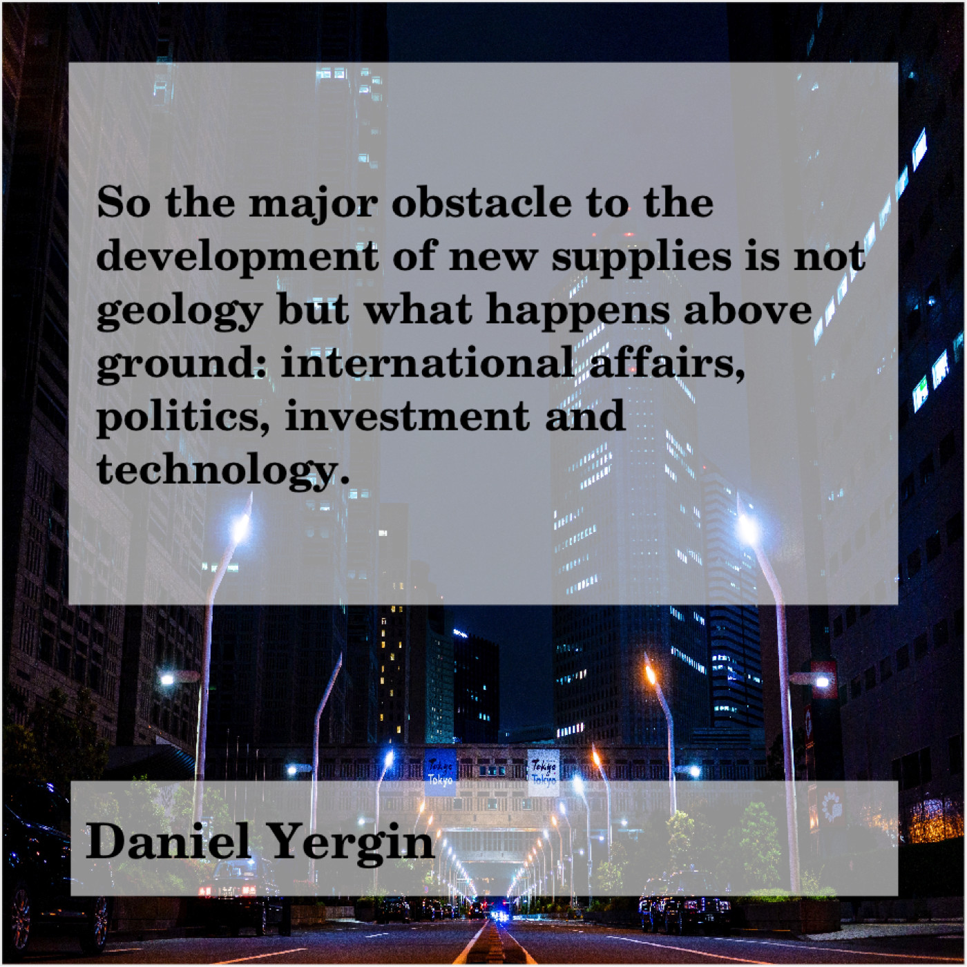 Daniel Yergin Daniel Yergin – So the major obstacle to… December 5, 2018 admin “So the major obstacle to the development of new supplies is not geology but what happens above ground: international affairs, politics, investment and technology.”-Daniel Yergin