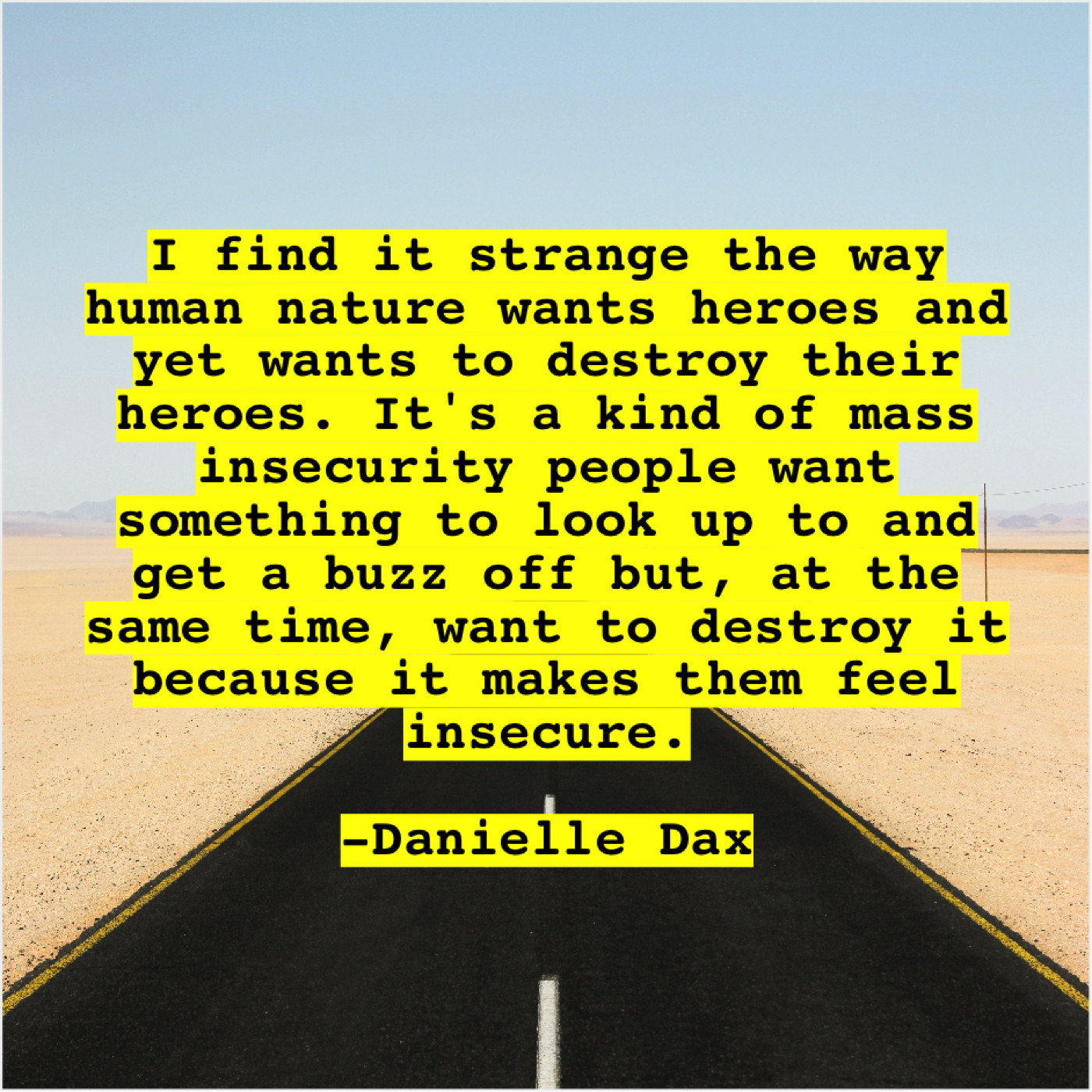 “I find it strange the way human nature wants heroes and yet wants to destroy their heroes. It’s a kind of mass insecurity people want something to look up to and get a buzz off but, at the same time, want to destroy it because it makes them feel insecure.”