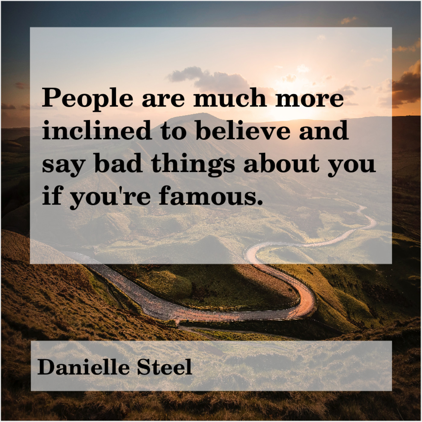 Danielle Steel Danielle Steel – People are much more inclined… December 30, 2018 admin “People are much more inclined to believe and say bad things about you if you’re famous.”-Danielle Steel
