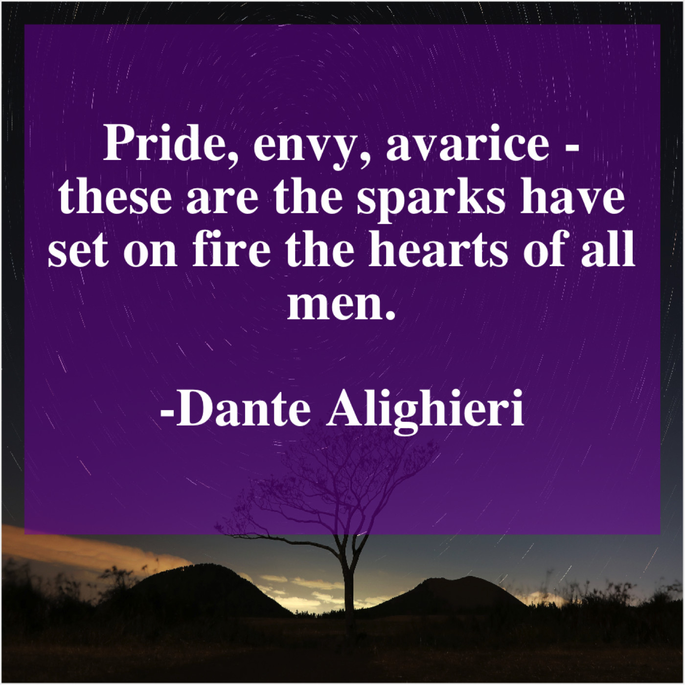 Dante Alighieri Dante Alighieri – Pride, envy, avarice – these are… August 11, 2019 admin “Pride, envy, avarice – these are the sparks have set on fire the hearts of all men.”-Dante Alighieri