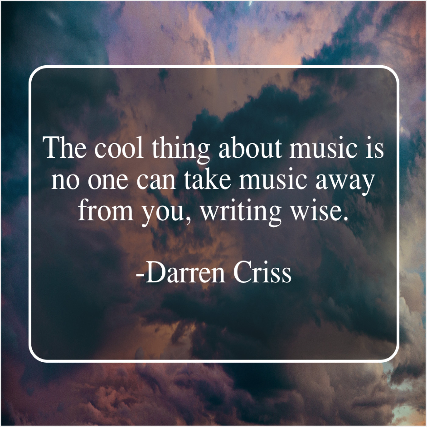 Darren Criss Darren Criss – The cool thing about music… September 23, 2019 admin “The cool thing about music is no one can take music away from you, writing wise.”-Darren Criss