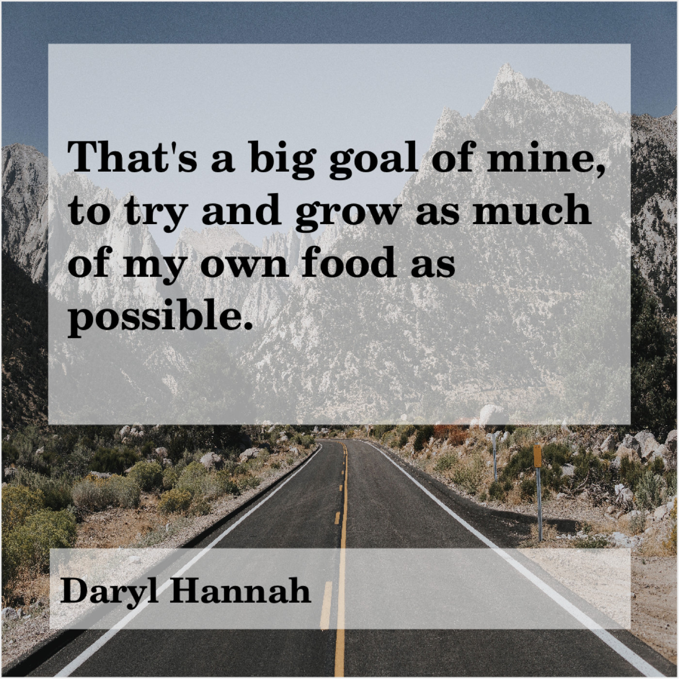 Daryl Hannah Daryl Hannah – That’s a big goal of… September 22, 2019 admin “That’s a big goal of mine, to try and grow as much of my own food as possible.”-Daryl Hannah