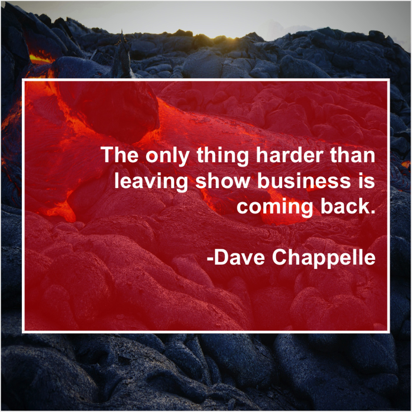 Dave Chappelle Dave Chappelle – The only thing harder than… April 18, 2019 admin “The only thing harder than leaving show business is coming back.”-Dave Chappelle