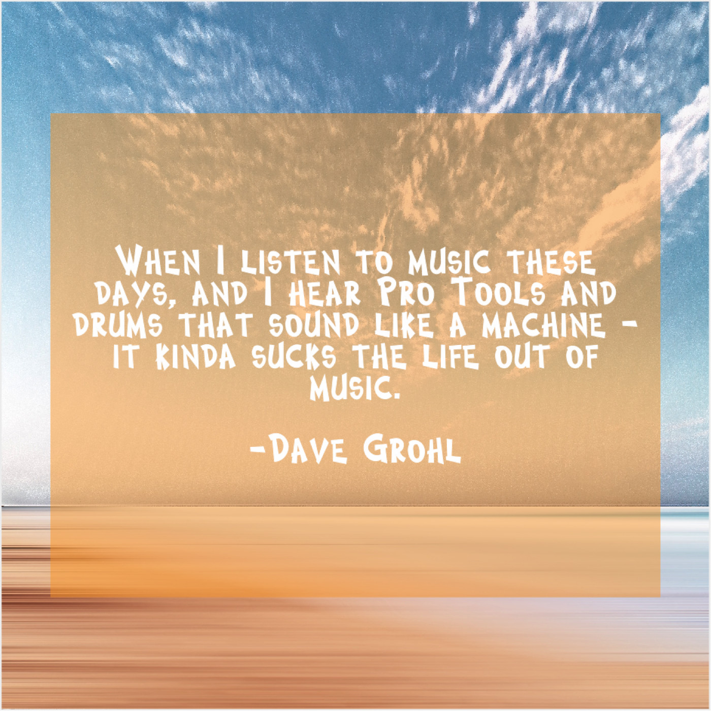 Dave Grohl Dave Grohl – When I listen to music… February 7, 2019 admin “When I listen to music these days, and I hear Pro Tools and drums that sound like a machine – it kinda sucks the life out of music.”-Dave Grohl