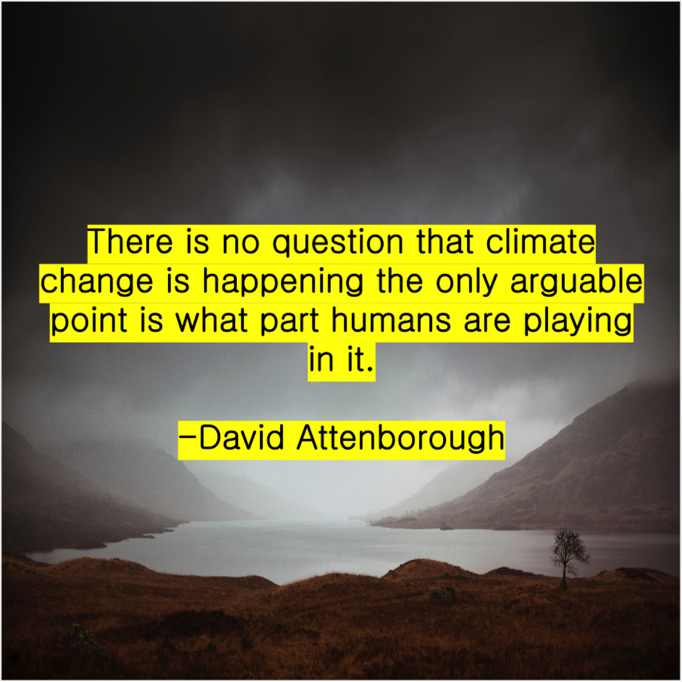 David Attenborough David Attenborough – There is no question that… May 15, 2019 admin “There is no question that climate change is happening the only arguable point is what part humans are playing in it.”-David Attenborough