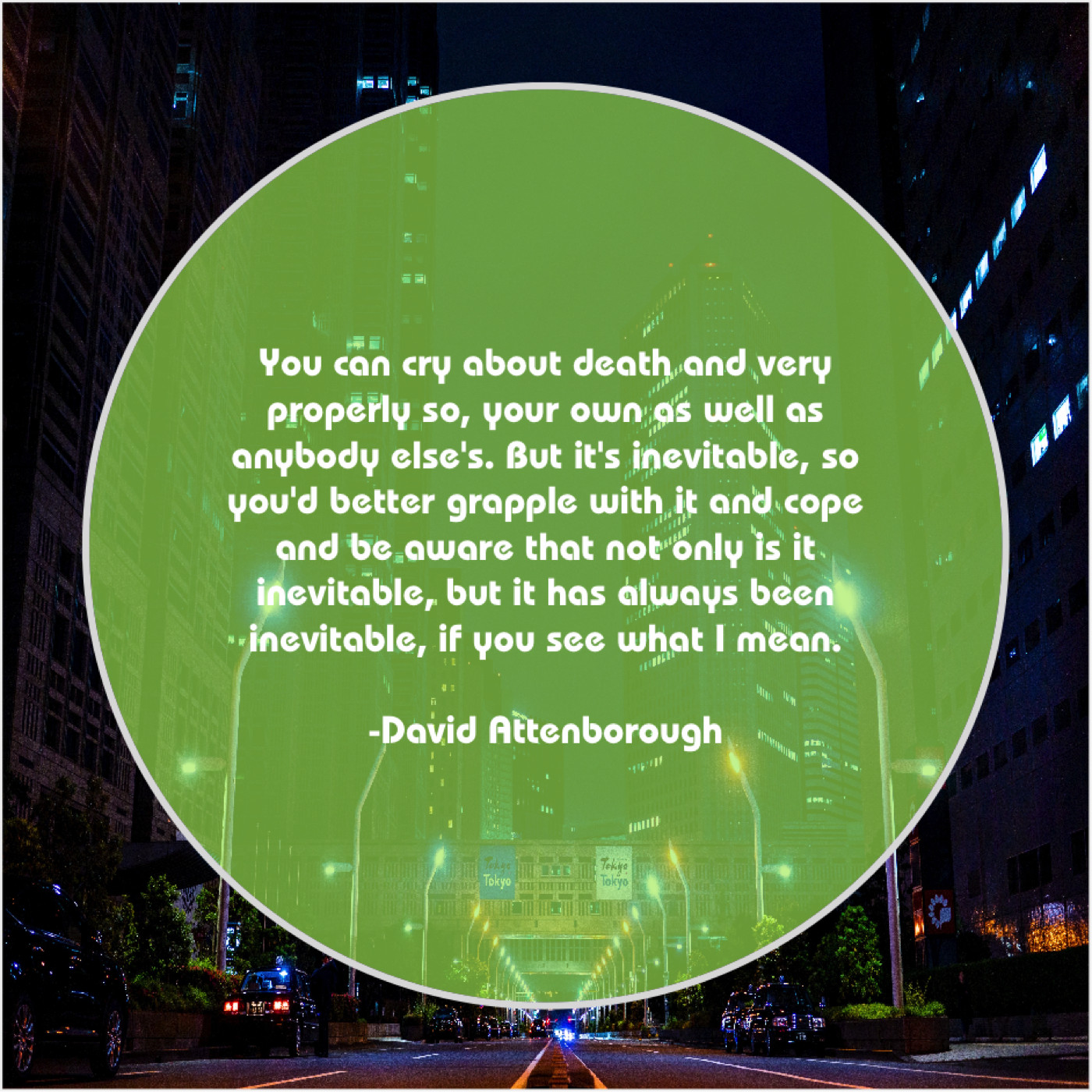 “You can cry about death and very properly so, your own as well as anybody else’s. But it’s inevitable, so you’d better grapple with it and cope and be aware that not only is it inevitable, but it has always been inevitable, if you see what I mean.”