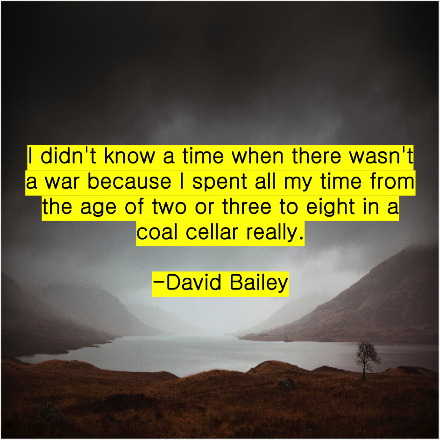 David Bailey David Bailey – I didn’t know a time… May 11, 2019 admin “I didn’t know a time when there wasn’t a war because I spent all my time from the age of two or three to eight in a coal cellar really.”-David Bailey