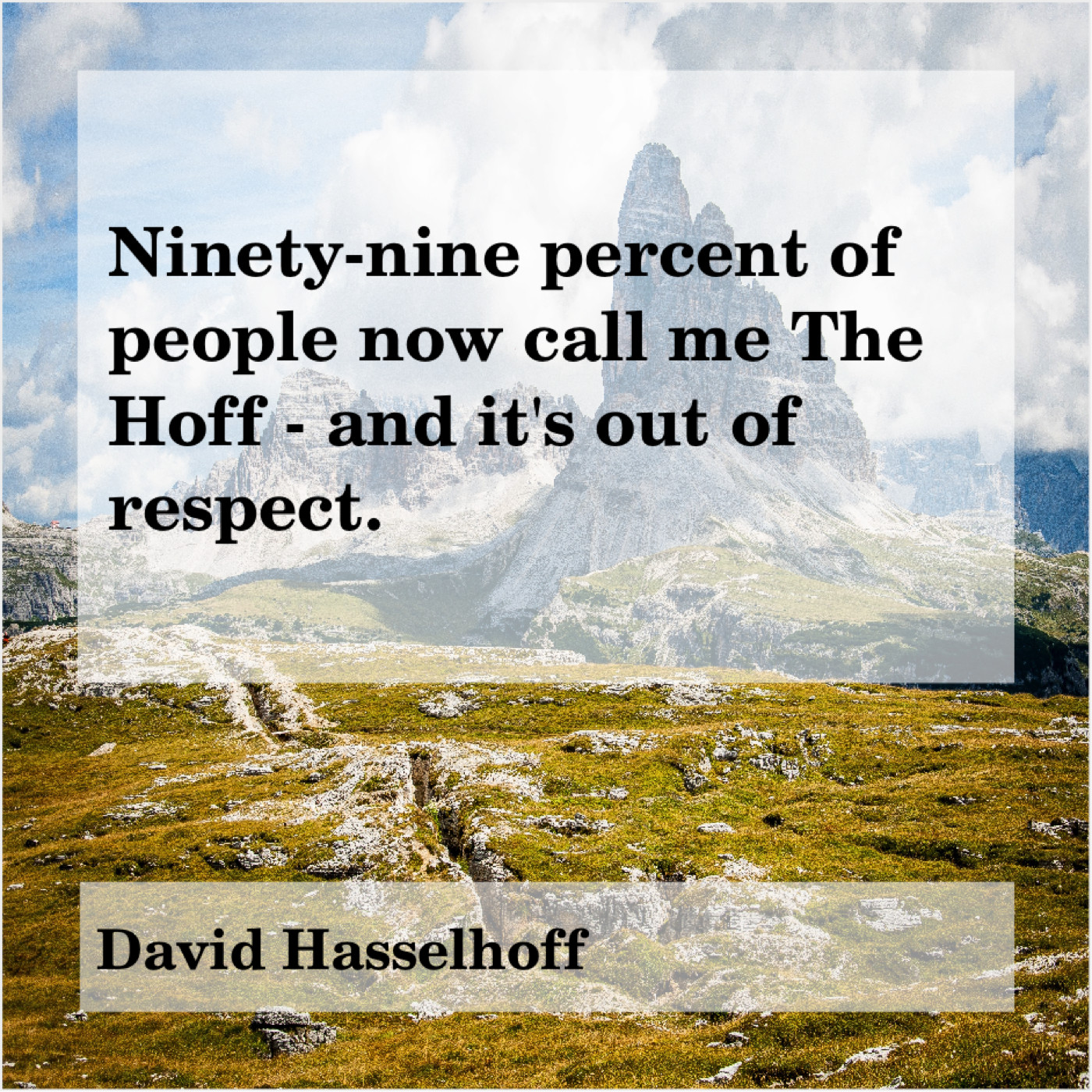 David Hasselhoff David Hasselhoff – Ninety-nine percent of people… August 3, 2019 admin “Ninety-nine percent of people now call me The Hoff – and it’s out of respect.”-David Hasselhoff
