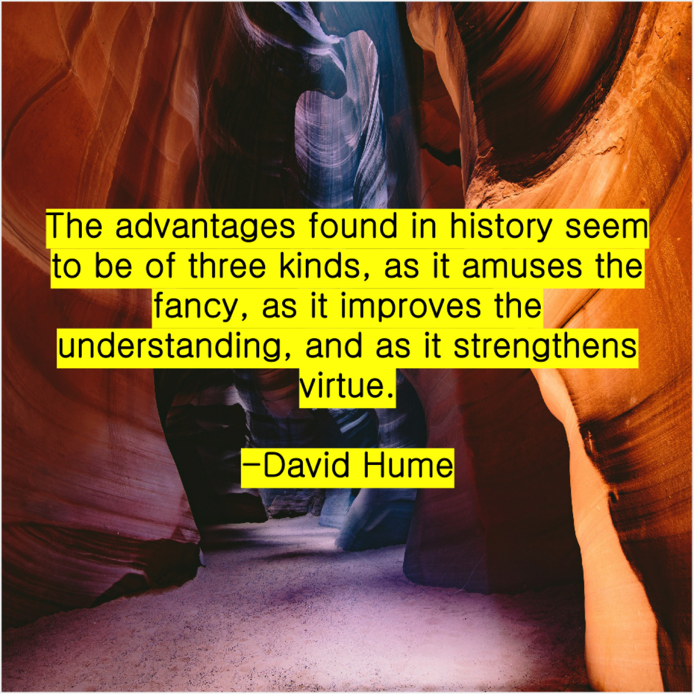 David Hume David Hume – The advantages found in history… June 14, 2019 admin “The advantages found in history seem to be of three kinds, as it amuses the fancy, as it improves the understanding, and as it strengthens virtue.”-David Hume