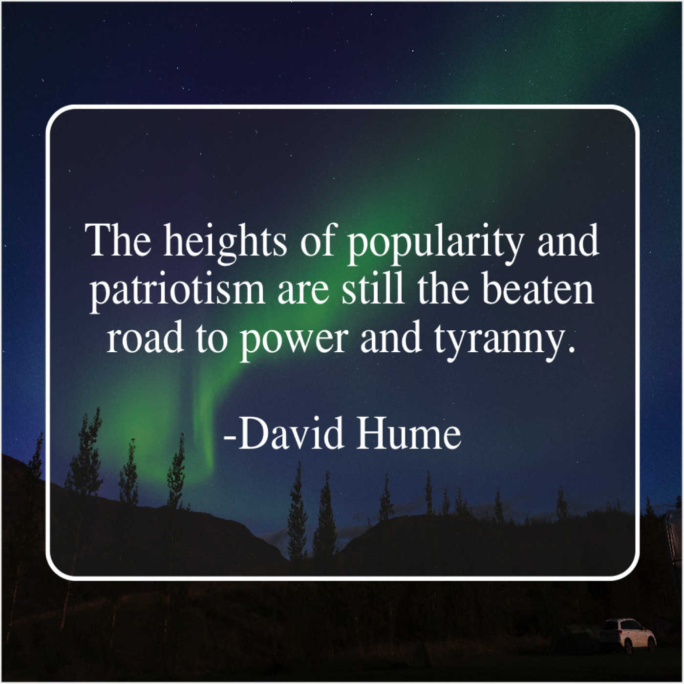 David Hume David Hume – The heights of popularity and… August 15, 2019 admin “The heights of popularity and patriotism are still the beaten road to power and tyranny.”-David Hume