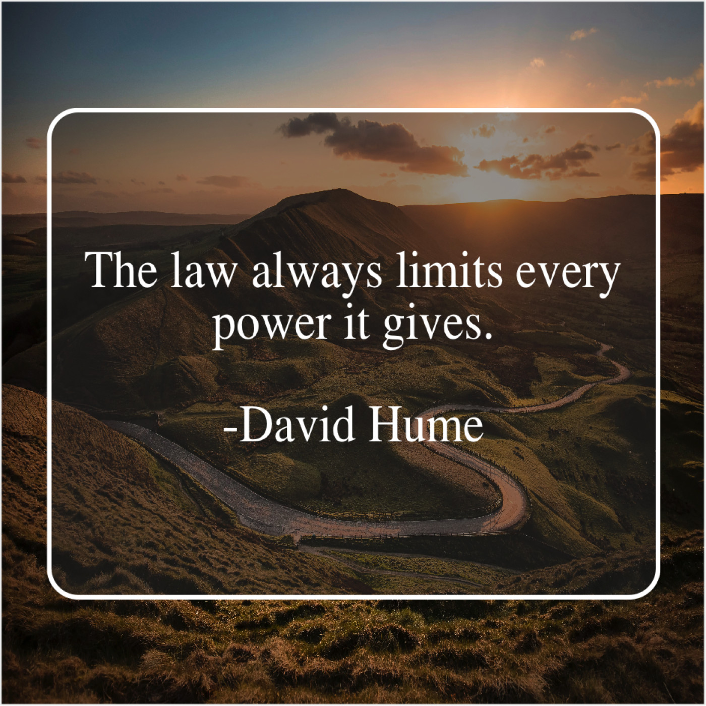 David Hume David Hume – The law always limits every… April 24, 2019 admin “The law always limits every power it gives.”-David Hume