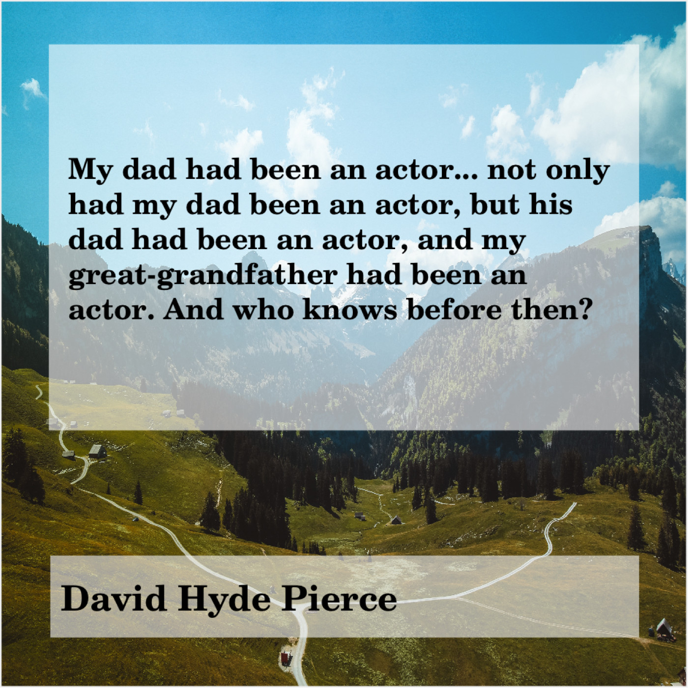 David Hyde Pierce David Hyde Pierce – My dad had been an… February 28, 2019 admin “My dad had been an actor… not only had my dad been an actor, but his dad had been an actor, and my great-grandfather had been an actor. And who knows before then?”-David Hyde Pierce