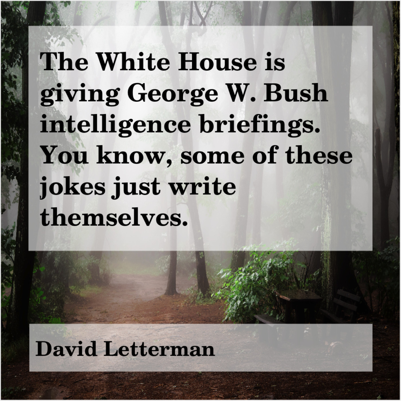 David Letterman David Letterman – The White House is giving… January 1, 2019 admin “The White House is giving George W. Bush intelligence briefings. You know, some of these jokes just write themselves.”-David Letterman